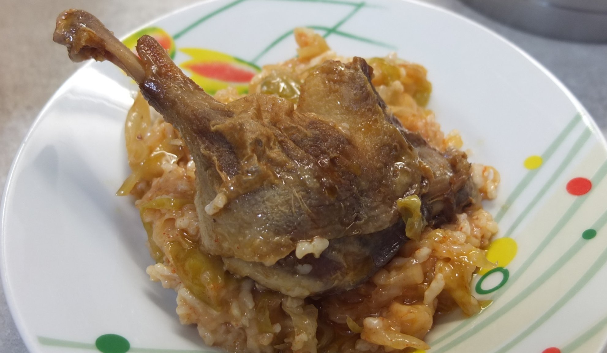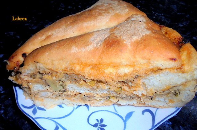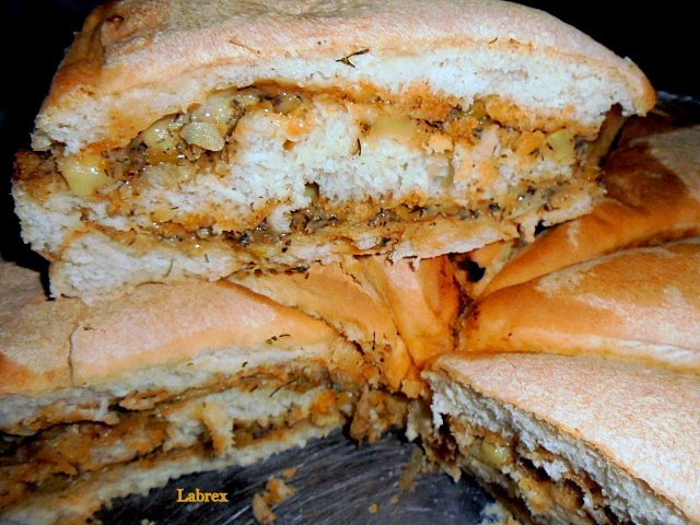 Хляб и манджа заедно, нещо като лучник, но с екстри - пилешко и картофи,