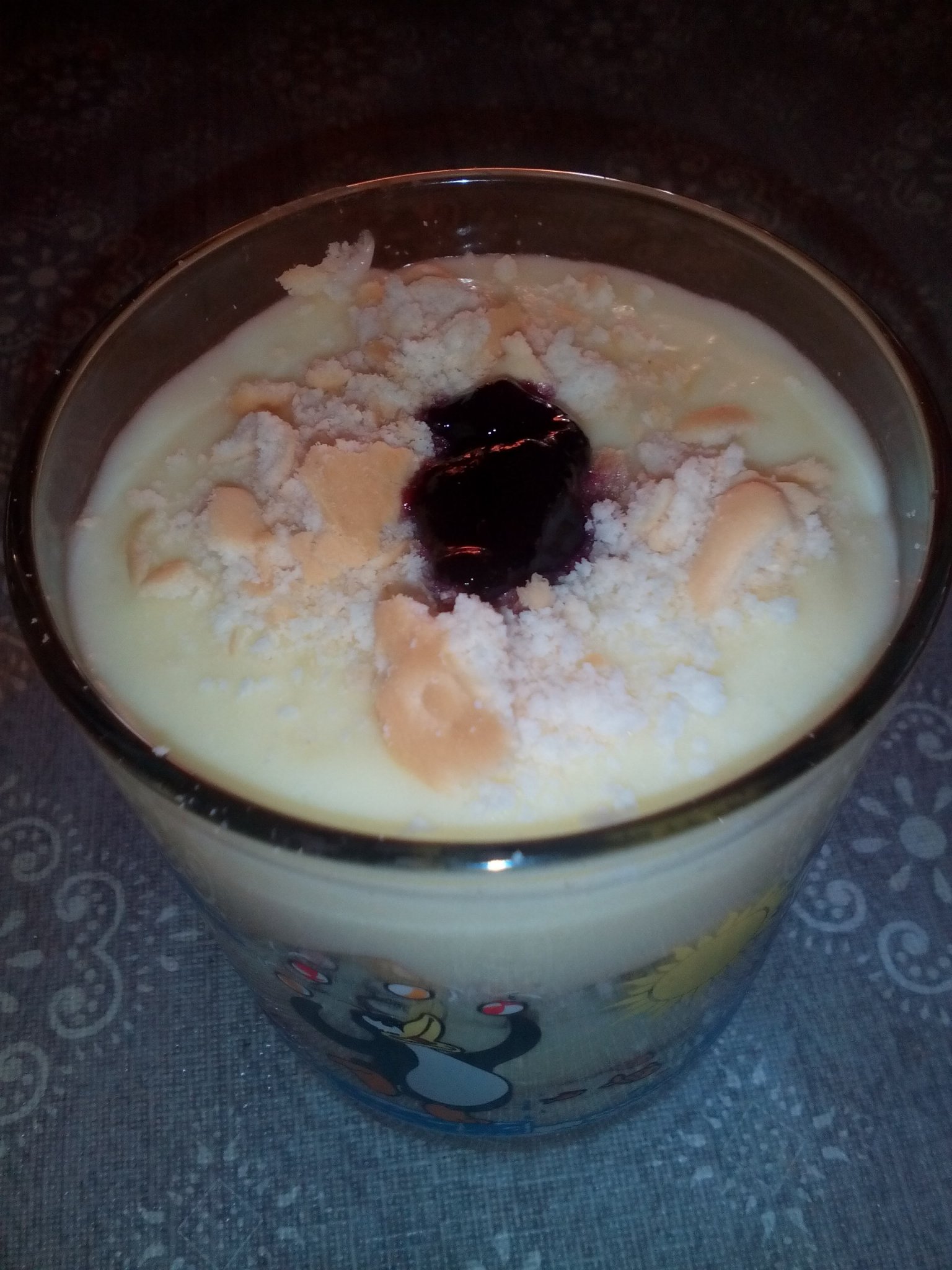 Направих бисквитена торта, която отлежава в хладилника. Остана ми от крема (пудинг, маскарпоне и заквасена сметана) и направих "тортички" в чаши.