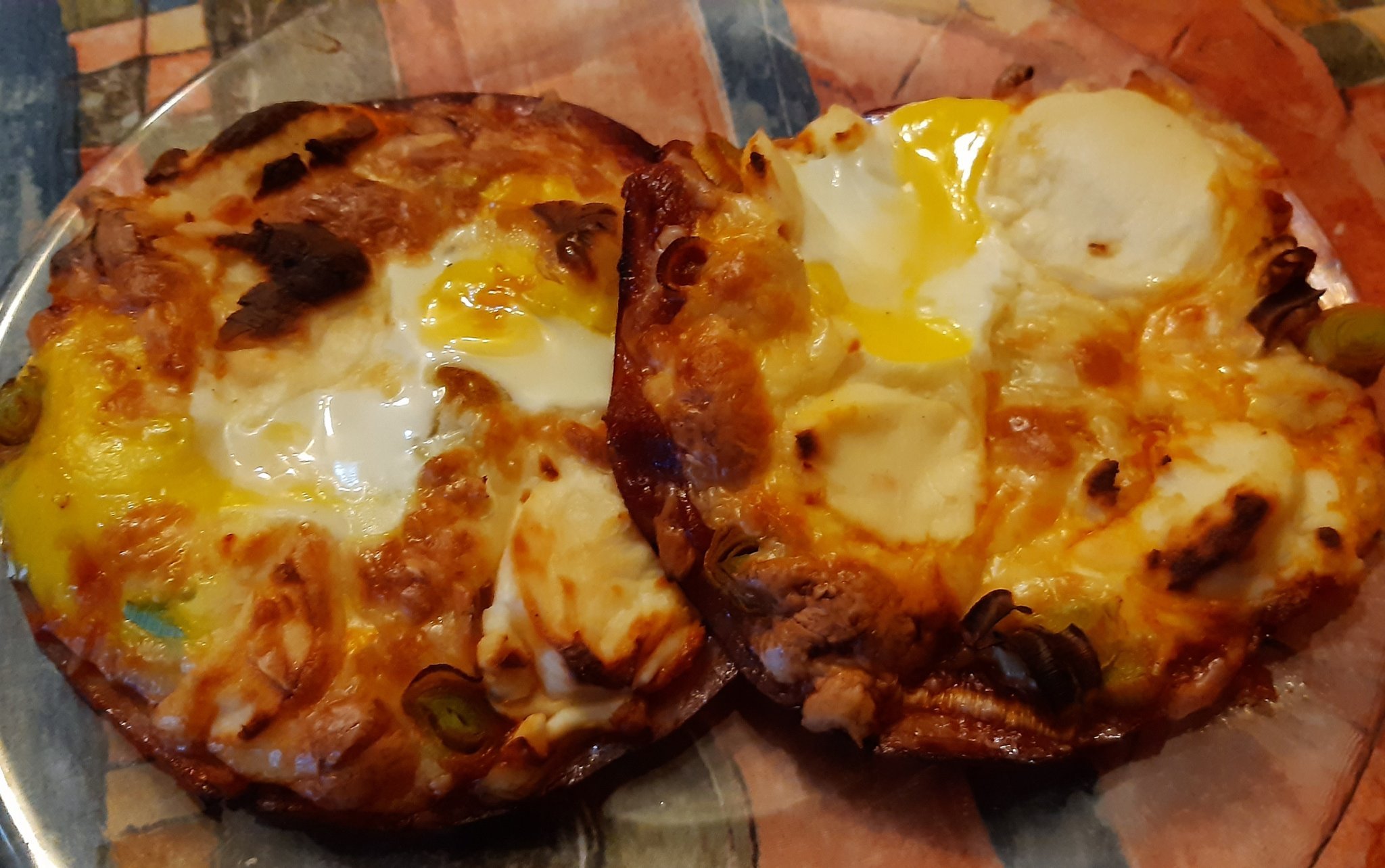Снощи имаше пици вкъщи (купувам "Маргарита", когато са по няколко и на промоция и я използвам за блат- редя отгоре, каквото искам или каквото имам) с шунка, кашкавал, топено сирене и яйца от пъдпъдъци.