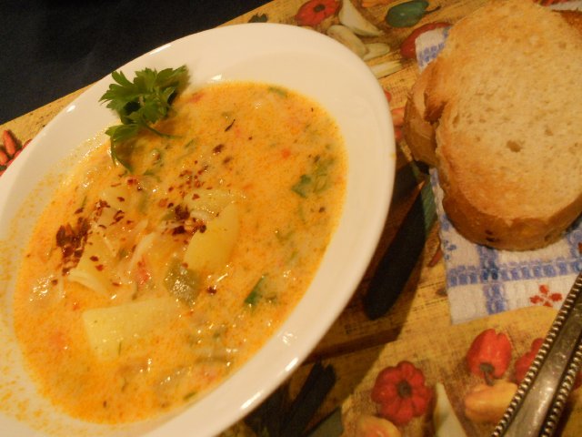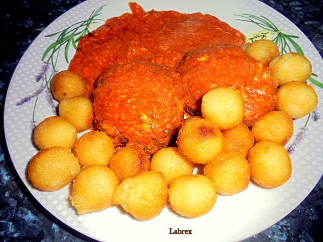 За да приготвите ястието, първо нарежете патладжана на филийки с дебелина около 0,5 см. След това го посолете и оставете да престои 30 минути, за да излезе горчивият вкус. Изплакнете и подсушете патладжана след това. Всяка филийка се овалва в брашно и се подрежда в тава без застъпване. Поръсете със сол, олио и печете във фурната. Междувременно чушките се пекат във фурната, след което се приготвя сос на котлона. Той се залива върху чушките и може да се добави индийско орехче по желание за по-богат вкус.
