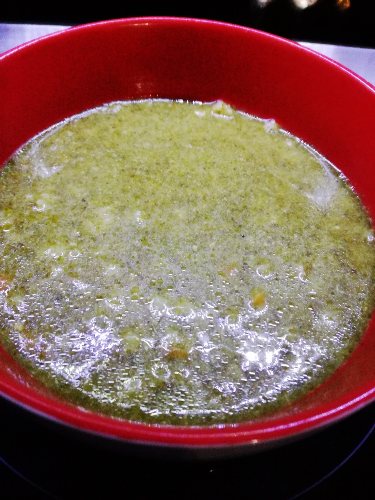 Супа от спанак.Не изглежда добре,но беше вкусна.Правих я с пюре от спанак и за това е такава.