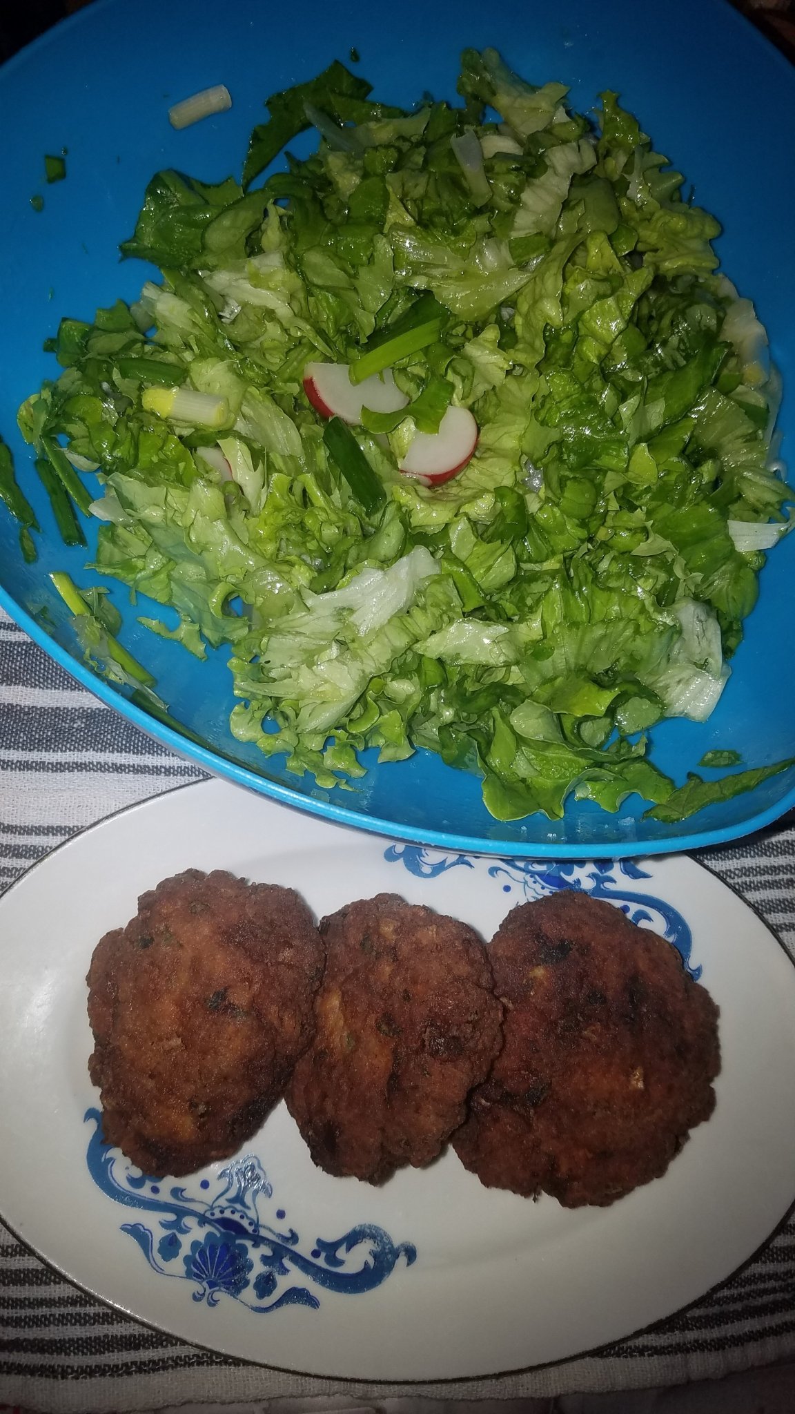 Тази вечер сме на пържени кюфтета и салата( пак зелена). Баницата със сирене за закуска за утре.