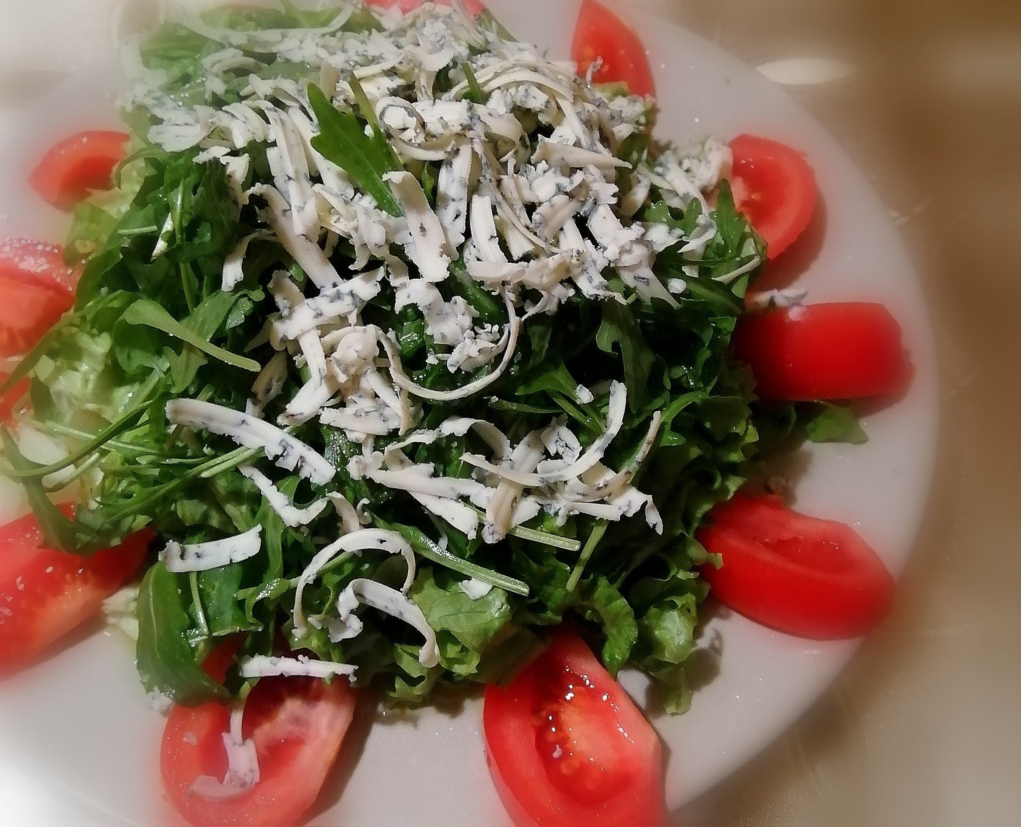 Ние днес сме на зелена салатка с домати и рукола(доизяждаме, че не траят зелениите много) с малко синьо сирене, зехтин, лимон, сол: