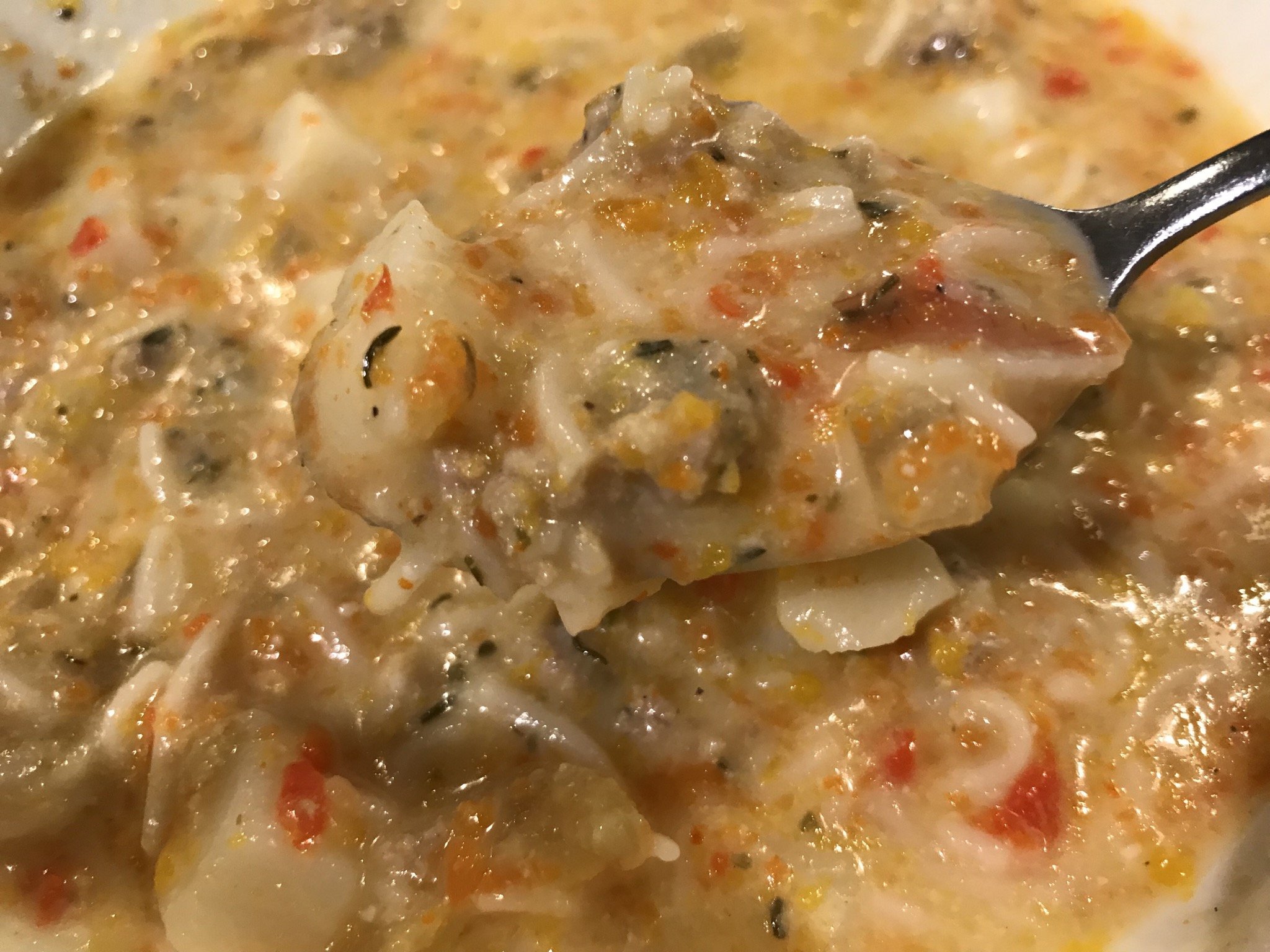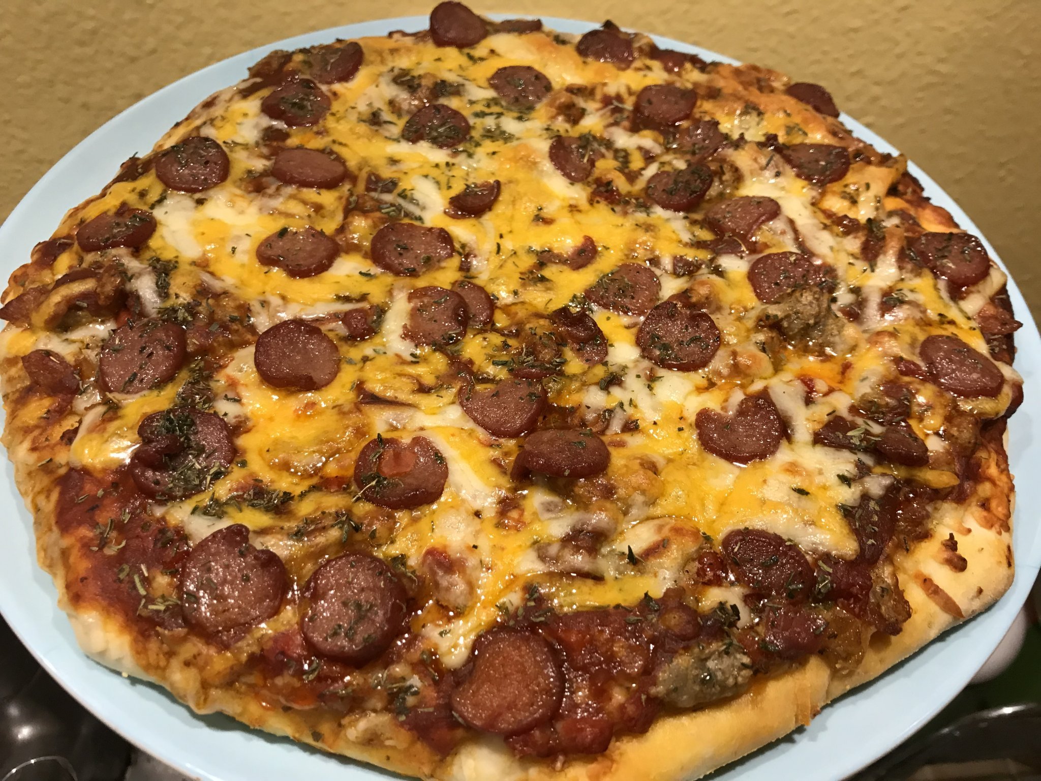 От тези дни - гъста супа с кайма, фиде и зеленчуци; домашна пица и салата.