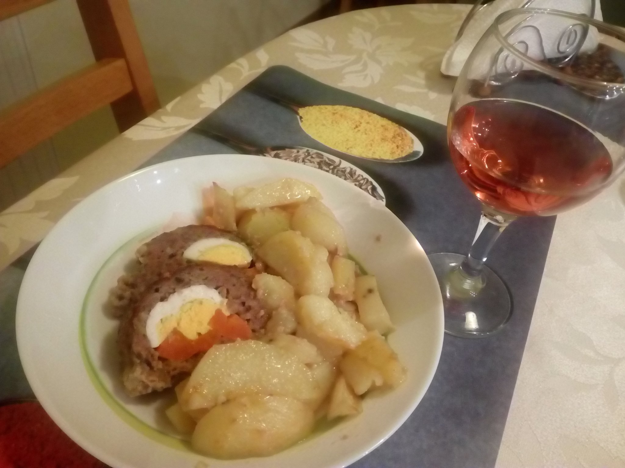 За да приготвите ястието, първо нарежете патладжана на филийки с дебелина около 0,5 см. След това го посолете и оставете да престои 30 минути, за да излезе горчивият вкус. Изплакнете и подсушете патладжана след това. Всяка филийка се овалва в брашно и се подрежда в тава без застъпване. Поръсете със сол, олио и печете във фурната. Междувременно чушките се пекат във фурната, след което се приготвя сос на котлона. Той се залива върху чушките и може да се добави индийско орехче по желание за по-богат вкус.