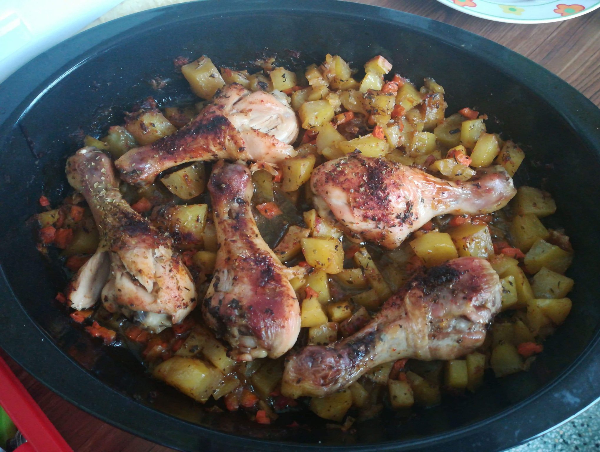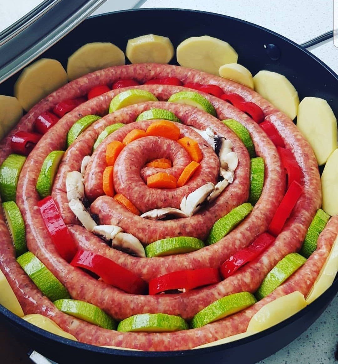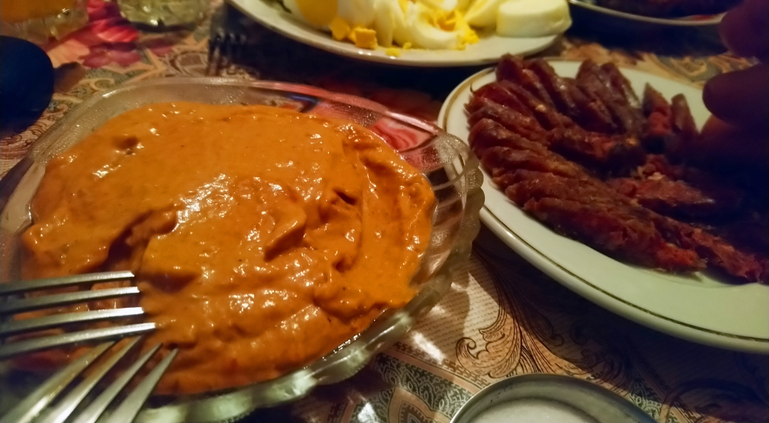 За да приготвите ястието, първо нарежете патладжана на филийки с дебелина около 0,5 см. След това го посолете и оставете да престои 30 минути, за да излезе горчивият вкус. Изплакнете и подсушете патладжана след това. Всяка филийка се овалва в брашно и се подрежда в тава без застъпване. Поръсете със сол, олио и печете във фурната. Междувременно чушките се пекат във фурната, след което се приготвя сос на котлона. Той се залива върху чушките и може да се добави индийско орехче по желание за по-богат вкус.