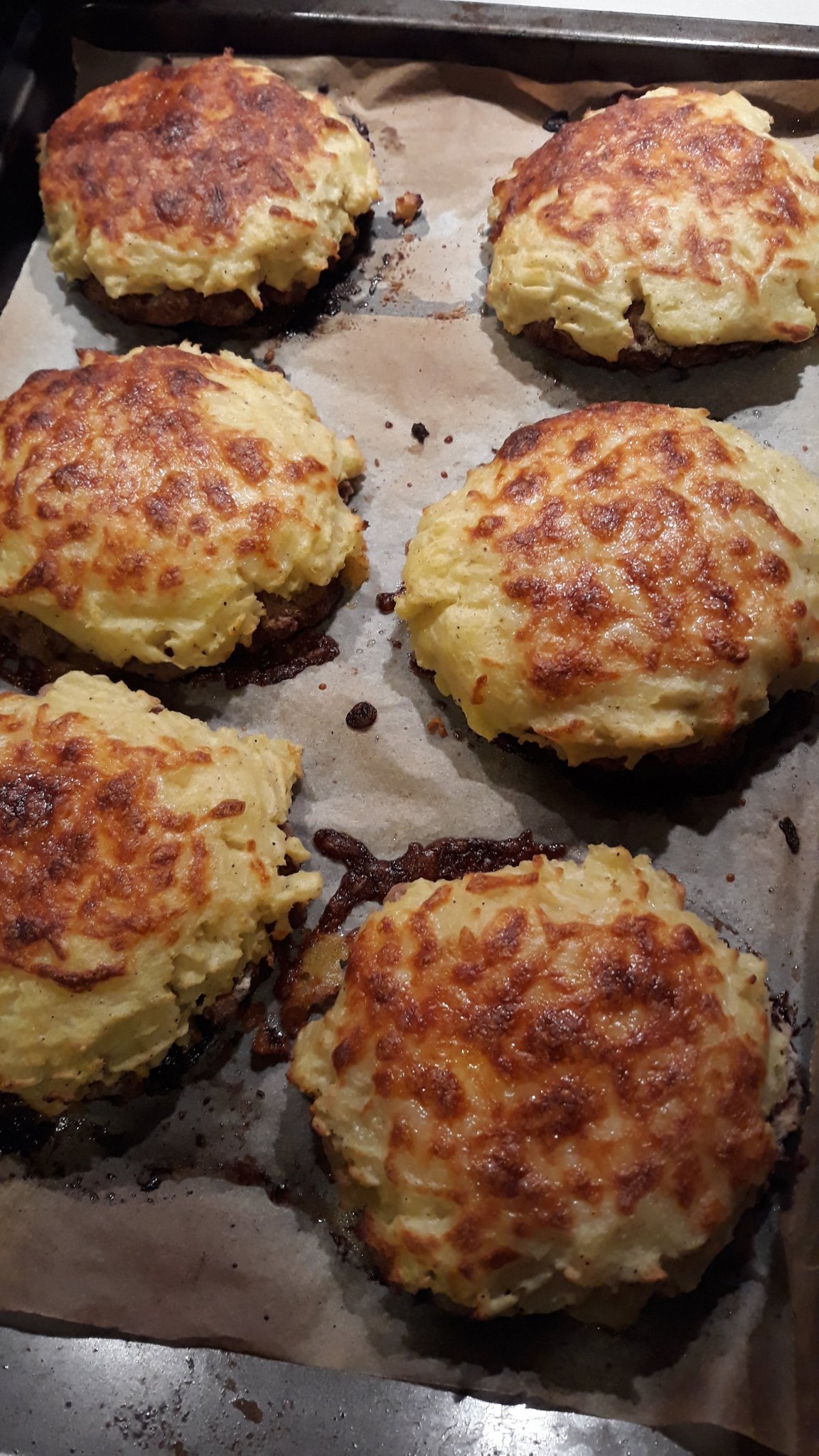 Шницел от кайма запечен с картофено пюре отгоре и кашкавал