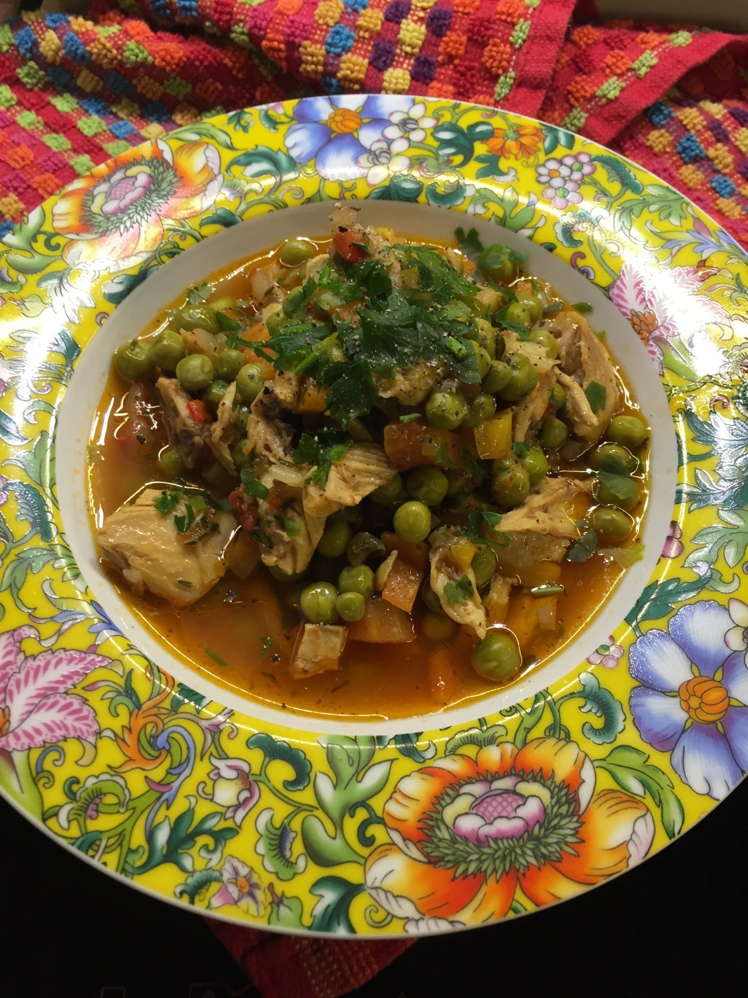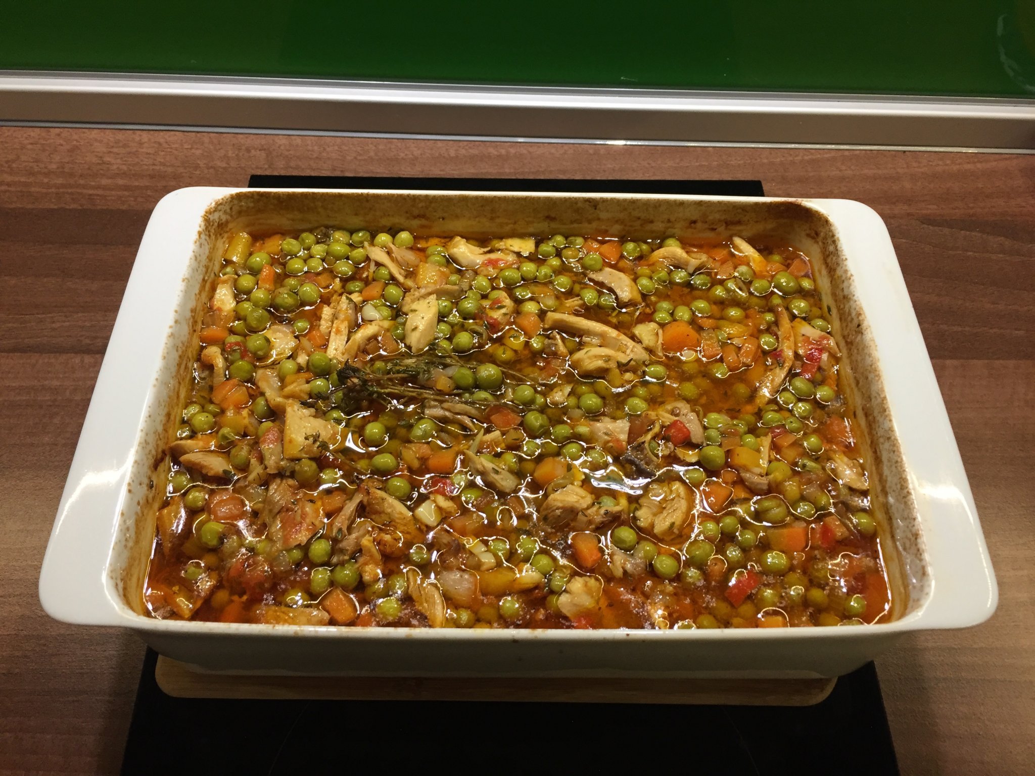 И ние сме на пилешко с грах тази вечер. По рецепта на “Супичка”. За първи път го правя на фурна, много вкусно се получи.