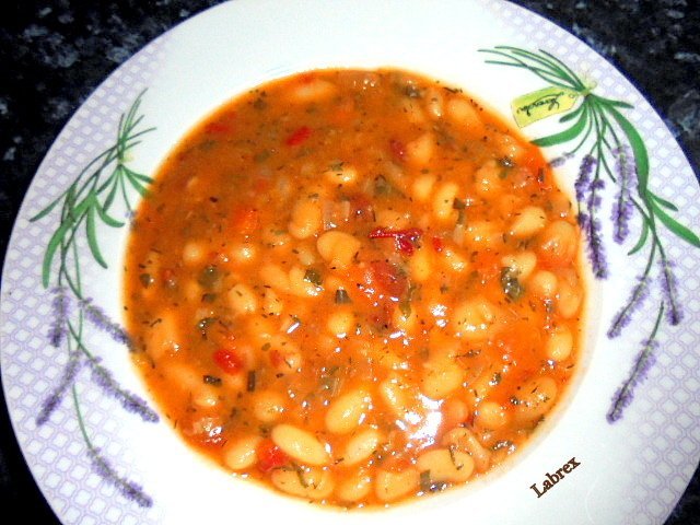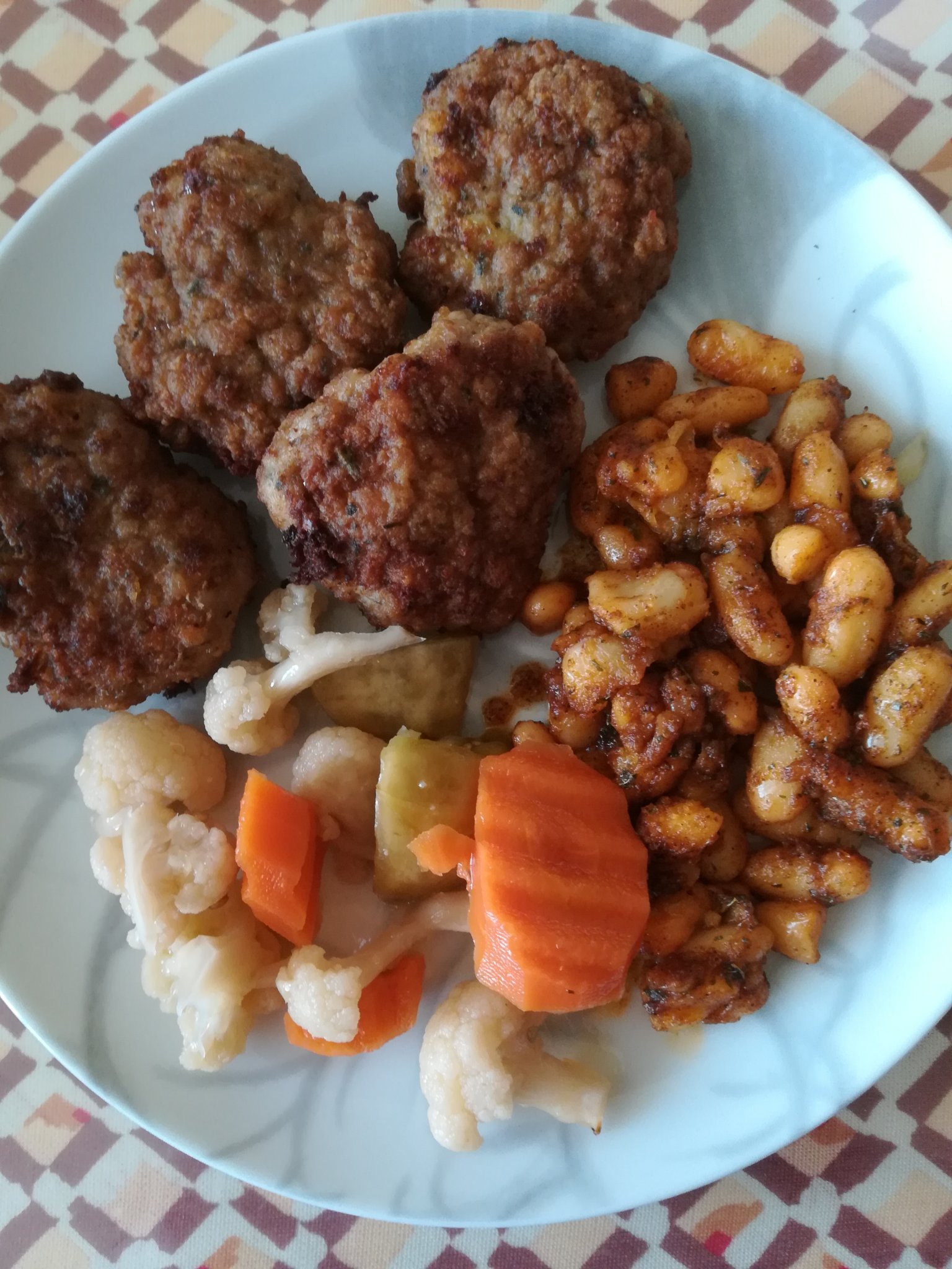 Бобената гарнитура е по идея от тук, но май съм сложила много червен пипер Thinking