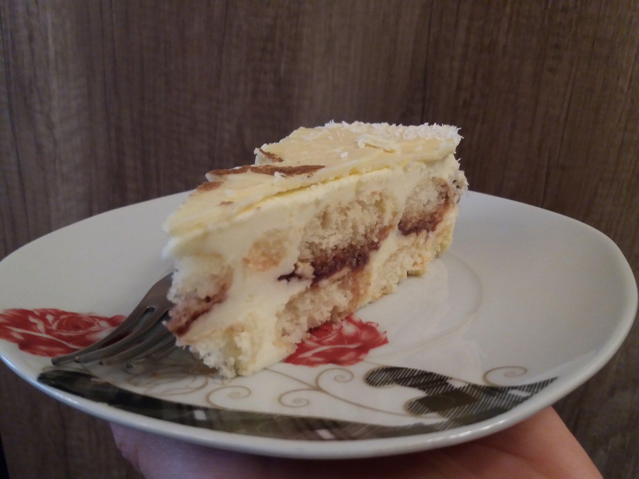 Торта с бишкоти, маскарпоне и сладко от малини, с недобри снимки, щракнати набързо с телефон