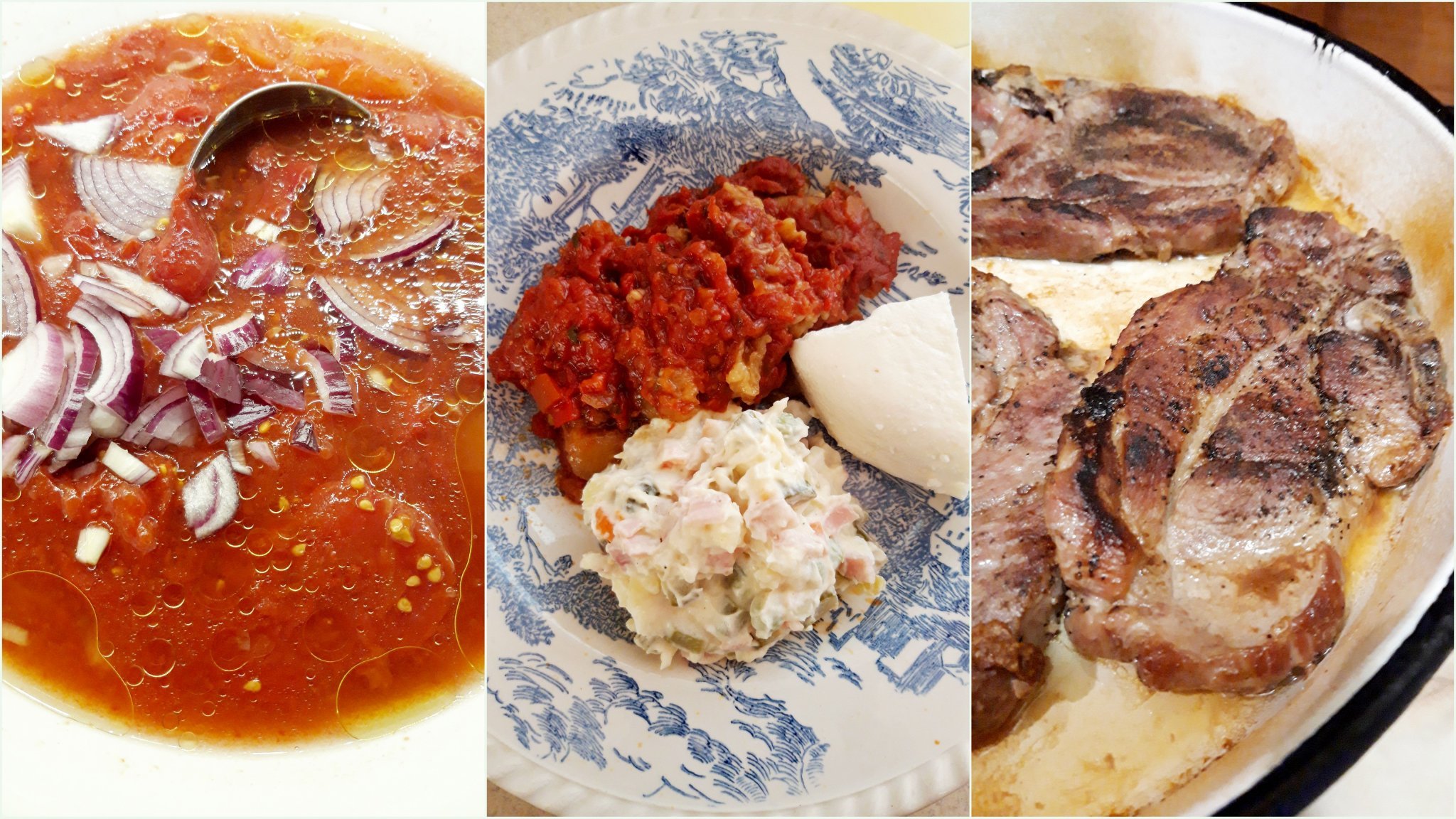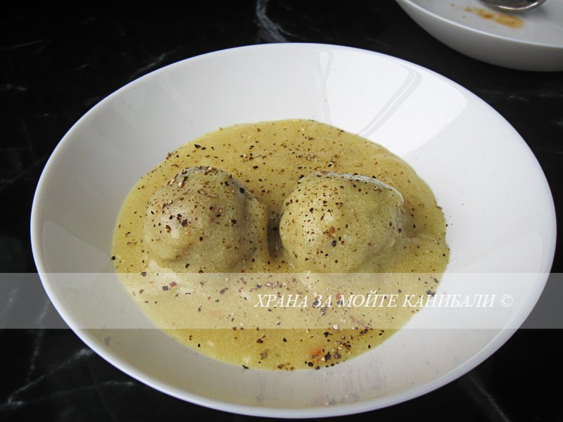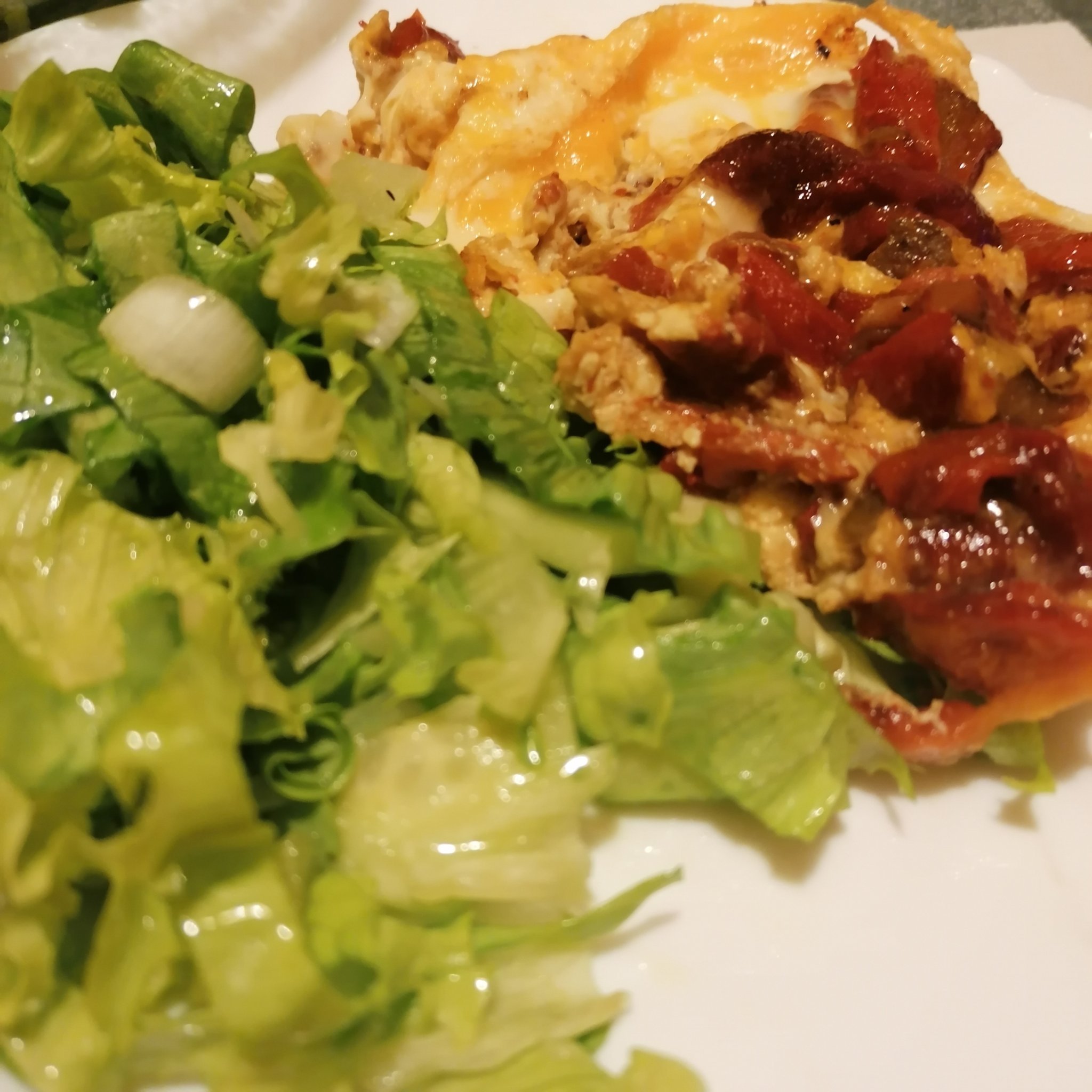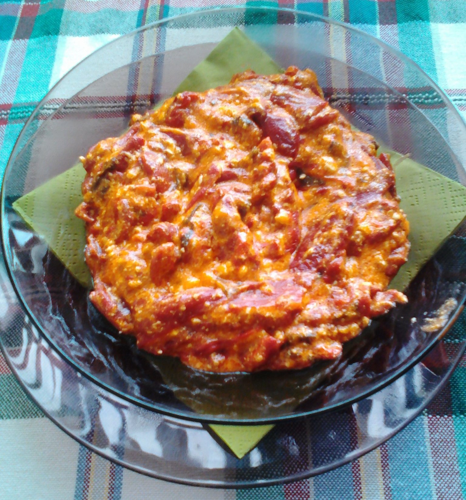За да приготвите ястието, първо нарежете патладжана на филийки с дебелина около 0,5 см. След това го посолете и оставете да престои 30 минути, за да излезе горчивият вкус. Изплакнете и подсушете патладжана след това. Всяка филийка се овалва в брашно и се подрежда в тава без застъпване. Поръсете със сол, олио и печете във фурната. Междувременно чушките се пекат във фурната, след което се приготвя сос на котлона. Той се залива върху чушките и може да се добави индийско орехче по желание за по-богат вкус.