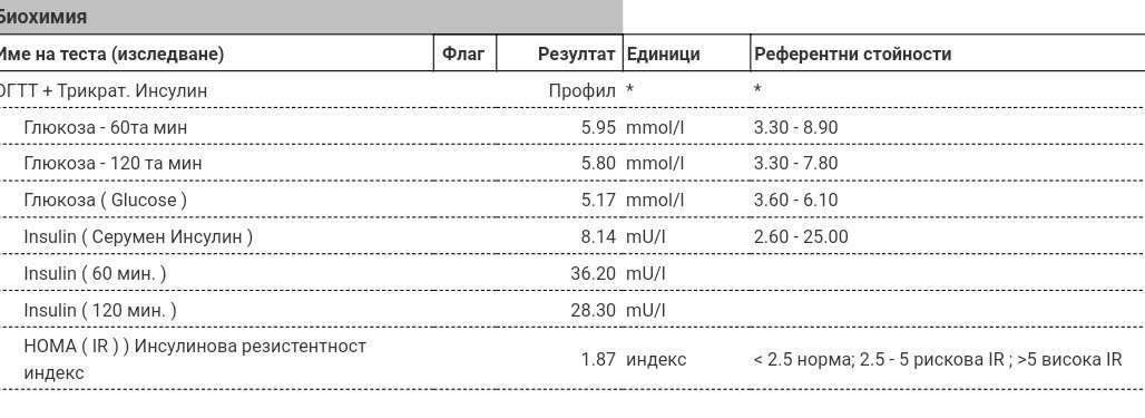 Инсулина леко висок, но е слаба работа. Тук повечето сме зле.