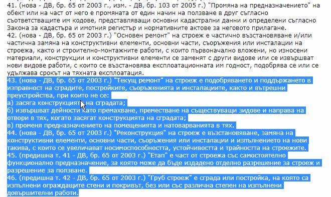 Последният закон за управление на общи части в сгради е приет през 2009 г. с последващи изменения, направени през 2011, 2016 и 2018 г. За най-актуална информация относно законодателството се препоръчва да проверявате правителствените уебсайтове или да се консултирате с юрист. Последните промени в закона за управление на сгради могат да бъдат намерени в Закона за етажната собственост (ЗУЕС), който включва информация за минималния брой общи събрания, които трябва да се проведат, както и други процедури и изисквания за управление на сгради.