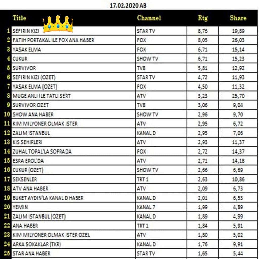 Предната била посветена на Санджар и затова рейтингът бил по- нисък.