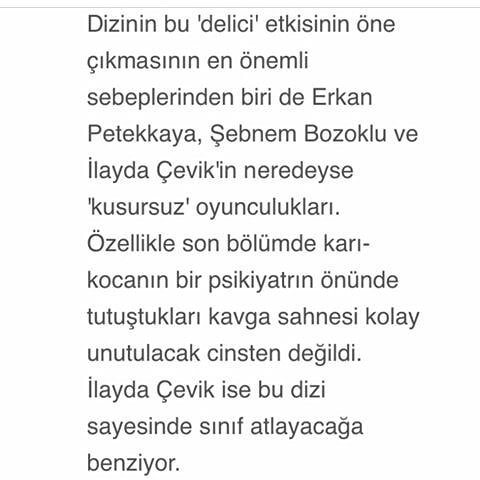 Игра таких профецанальных актёров, как Эркан Петеккая и Шебнем Бозоглу не обсуждаемый