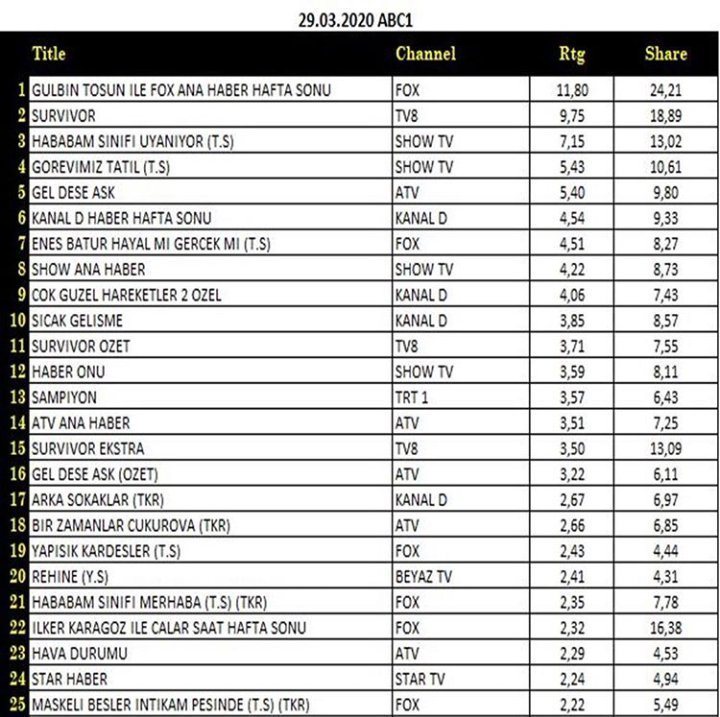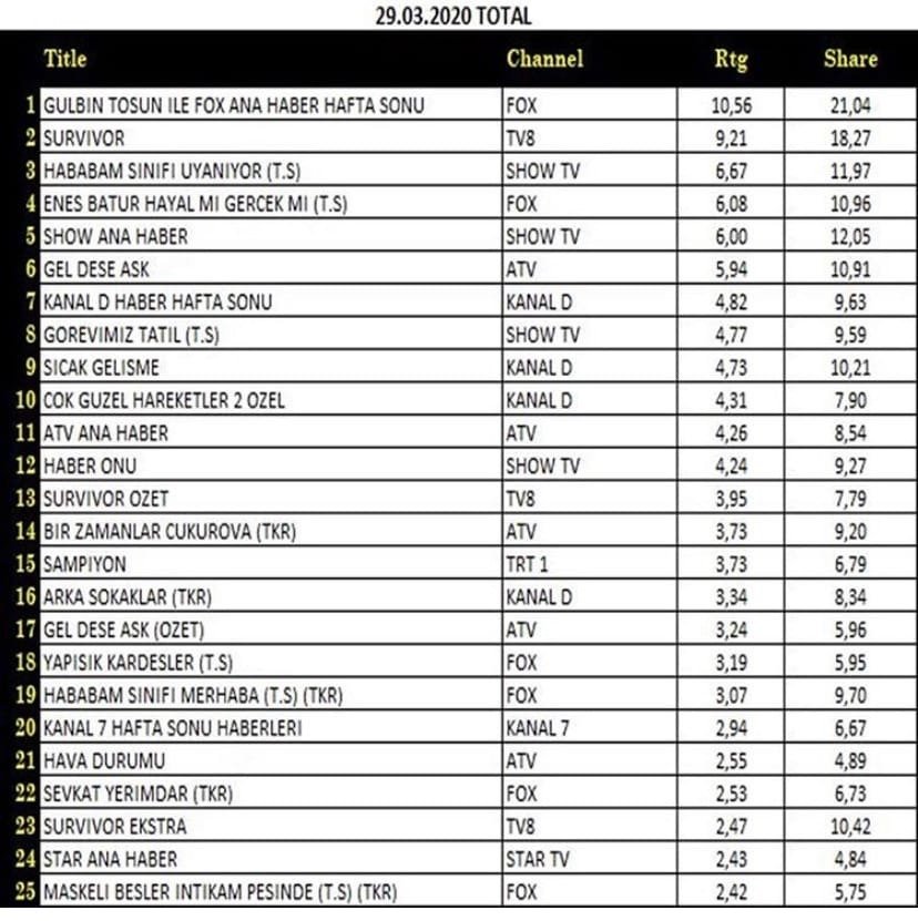 Рейтингът се е покачил още малко при липса на повечето сериали!Даваха само ''Шампион'',който миналата неделя не излъчиха и Сървайвър!Останалите канали повтарят сериали или пускат филми!