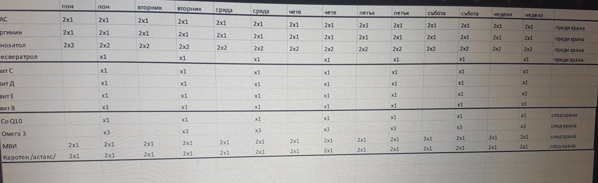 Малко е орязана, затова превеждом - нак, аргинин, инозитол, ресвератрол.