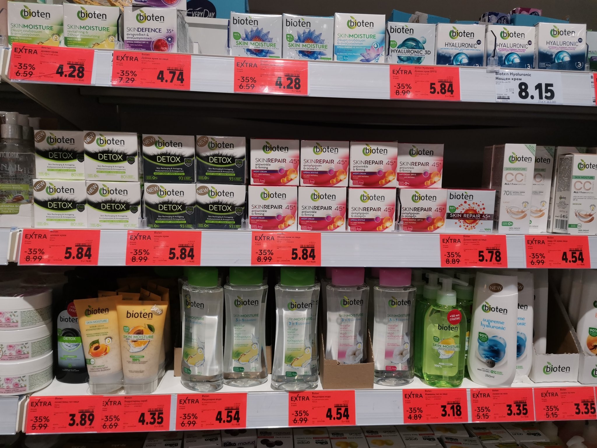 Специално за Голд ходих днес, но в нашия Кауфланд нямаше. Имаше други три вида за лице, единия от които Хиалуроник3D. За ръце, също. И СС крем. Нямаше серуми, нямаше околоочни никакви..