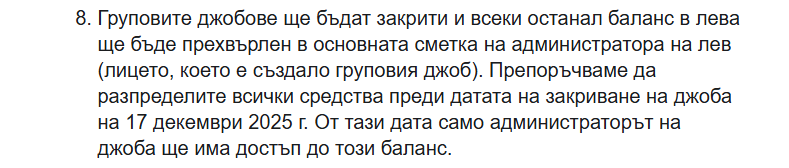 2. от 17 Дек, всякакви услуги, които включват обмяна на евро в лев и обратното се спират. Това се има в предвид. Все пак започваме да преминаваме към еврото и един вид го правят плавно, нямаме нужда от обмени ево в лев (и обратното, те ще го направят обратното без такси)