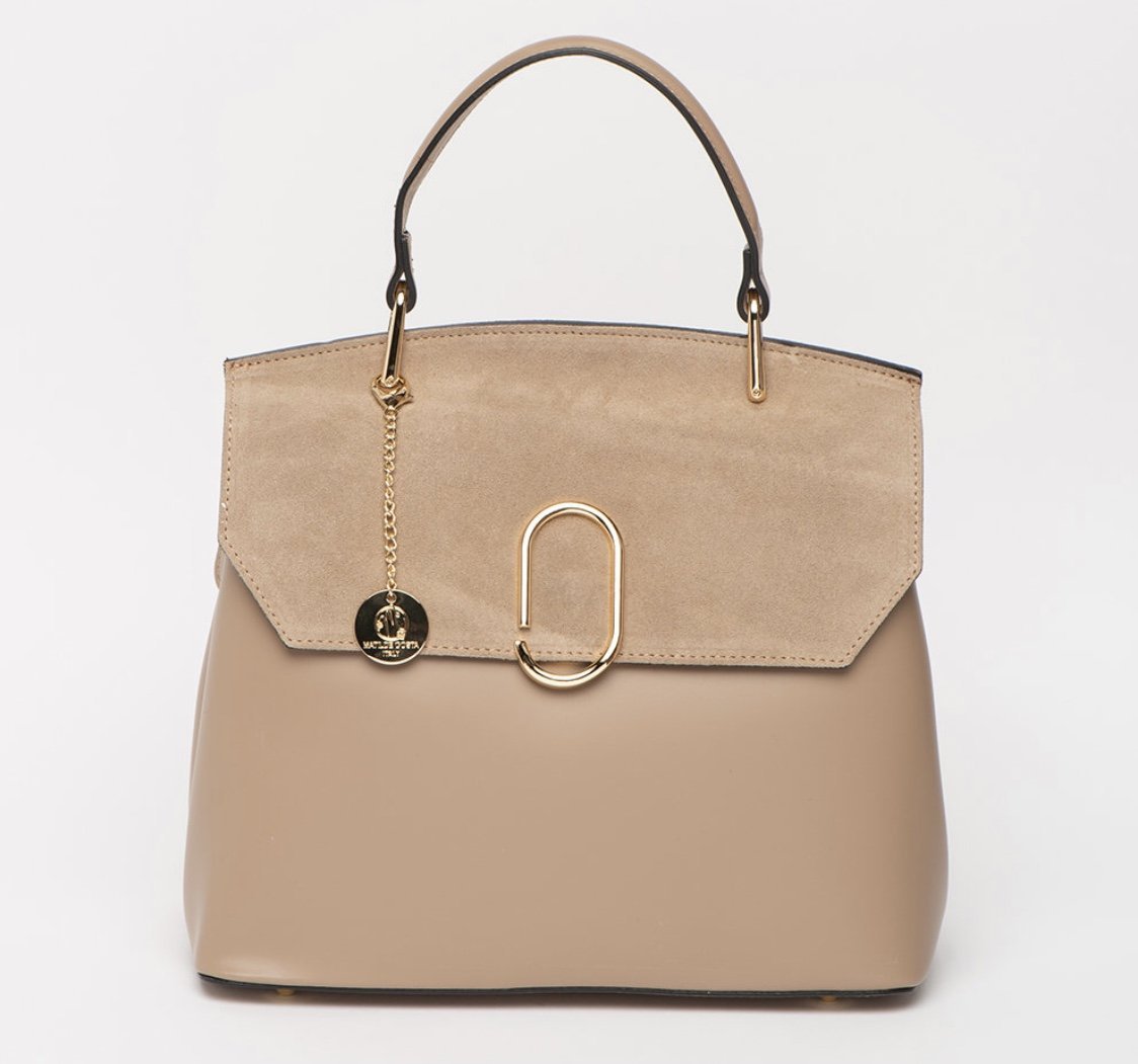 Бежовата е мадамска. Такива дръжки, обаче, не носят тежест, ще деформират фасона на капака, ако чантата тежи.