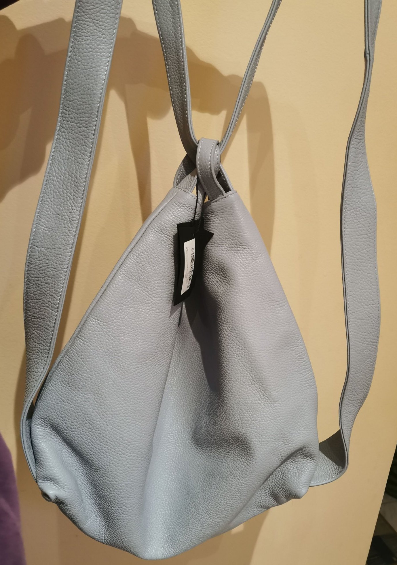 Пристигна и чантата от fashiondays. Чудесна е, голяма и от хубава, плътна кожа, без да е тежка. Цветът е гълъбово синьо, хубав неутрален цвят. Чантата става и на раница, и стои много добре и като такава. Струваше ми 101 лв с 10% отстъпка.