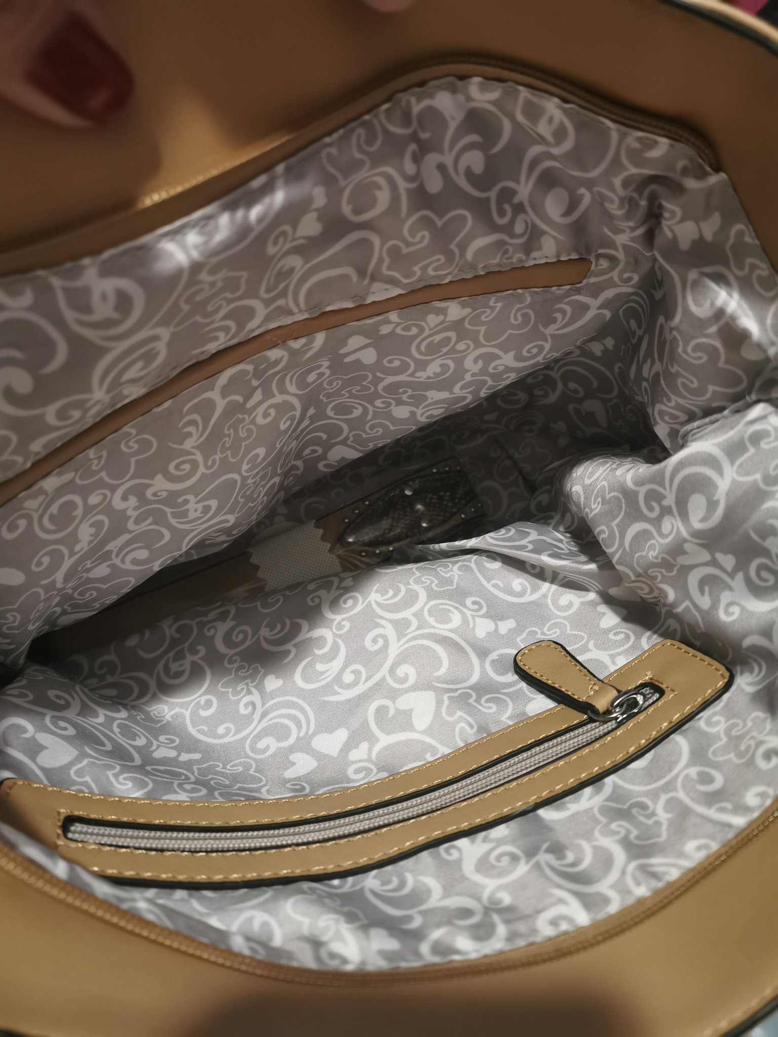 Тази чанта си поръчах за бежовите боти. Сега загледах, че малко жълтее чантата, не е розово-бежова, но аз и ботите не съм получила още, та... каквото такова