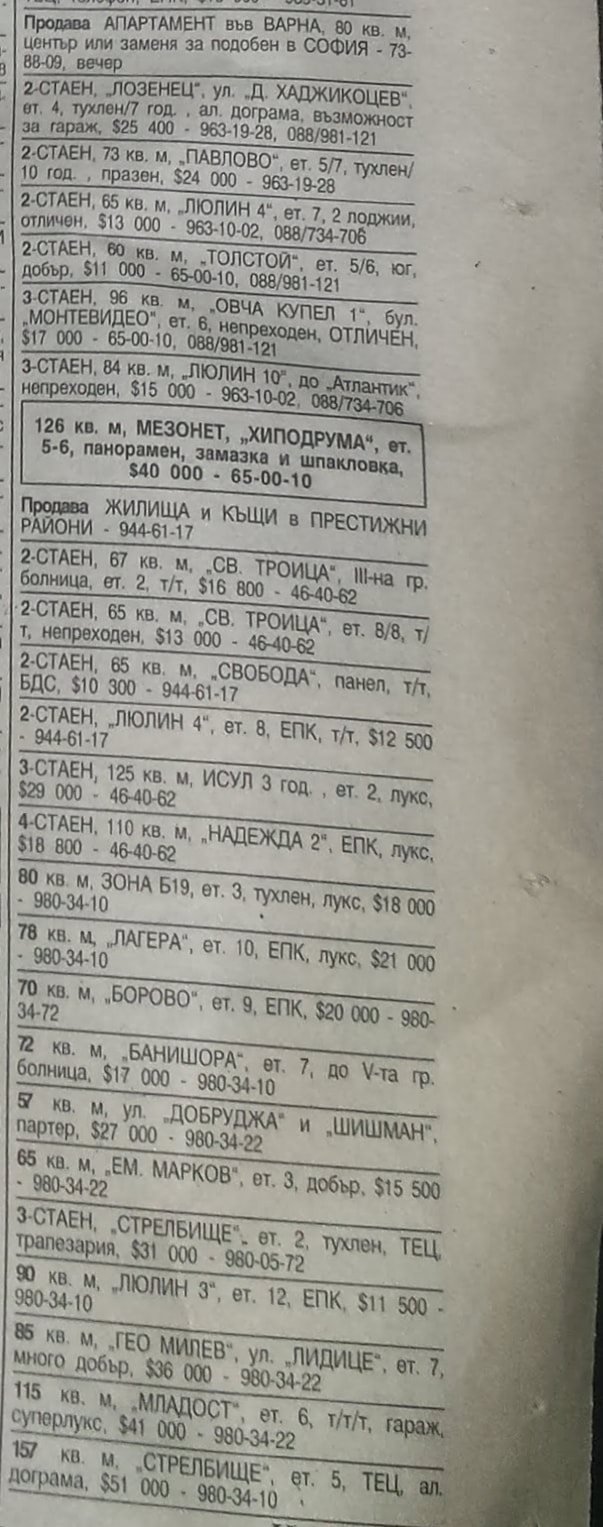 Архивите са живи вестник имоти 2001г. САМО преди 19 г. цените в София и девиза на столицата Simple Smile Расте но не старее!