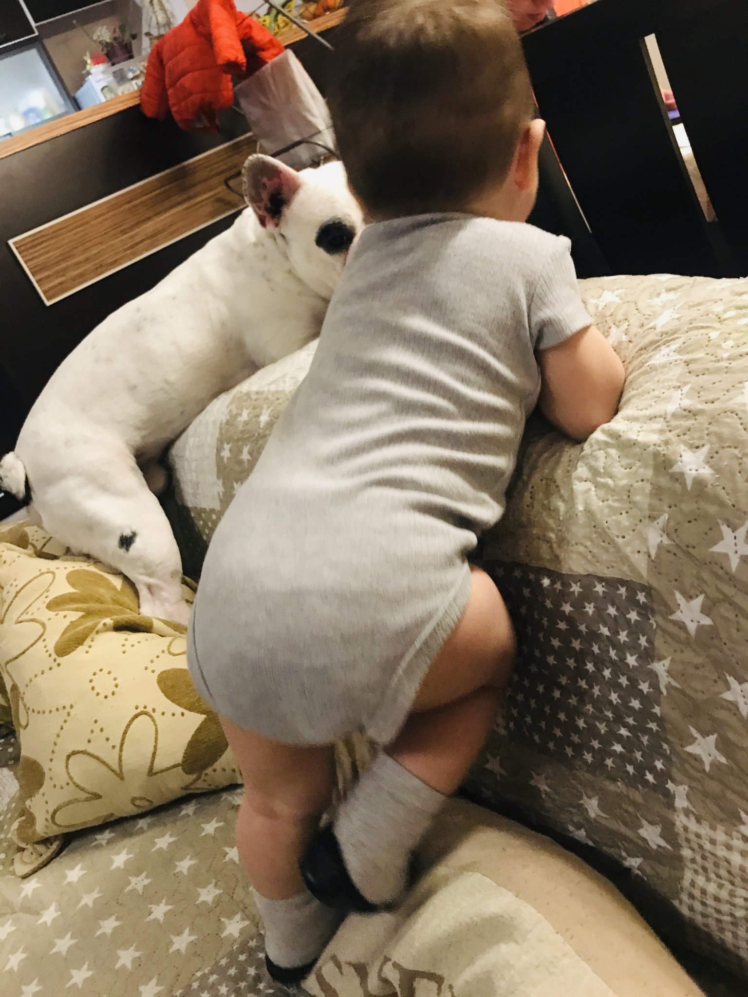 При нас е малка лудница вече... няма да показвам SatisfiedSweat SmileLaughing то клипче трябва да кача - 2мата се гонят и 3тото ги гони и джафка... ааааа у.