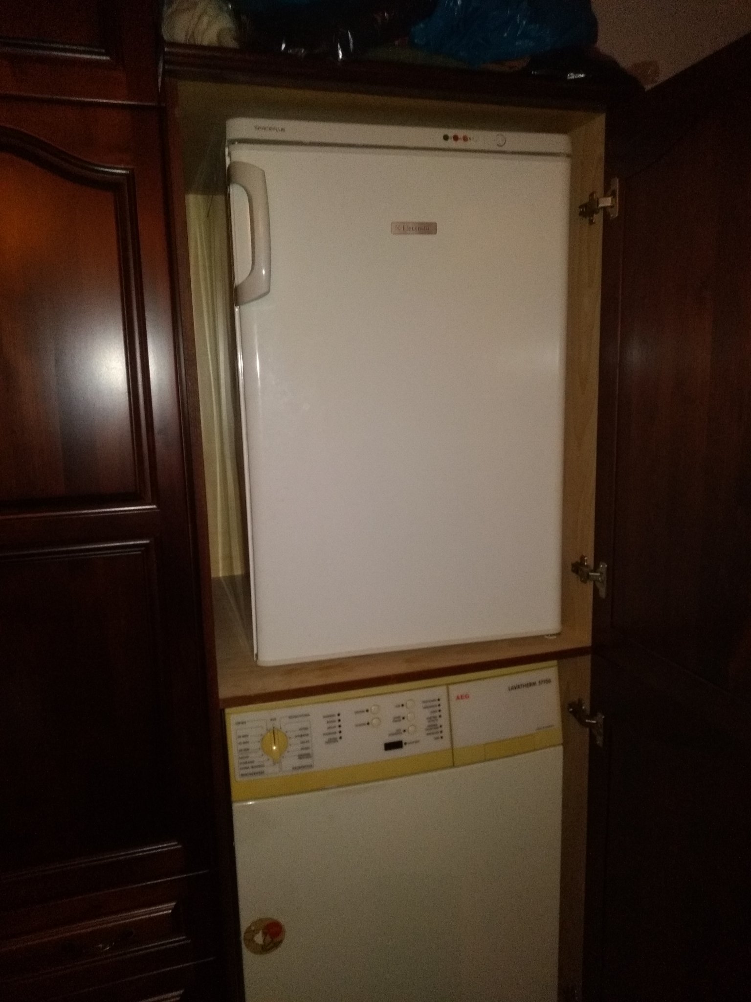 За затворен шкаф става дума, който го смятаме да е 140 см общо дълъг и 70 дълбок. Половината ще е за пералнята, другата половина за хладилника.