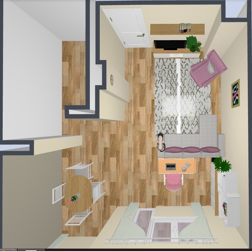 ). Moля, за мнения кой вариант е по-добър и защо. Също при варианта, който е сиво + розово, какъв друг цвят още може да се вкара и къде? Качвам също и избраният цвят за стените и паркета. Кухнята е светло сива + бели плочки+дрървесен плот. Приемам съвети и препоръки