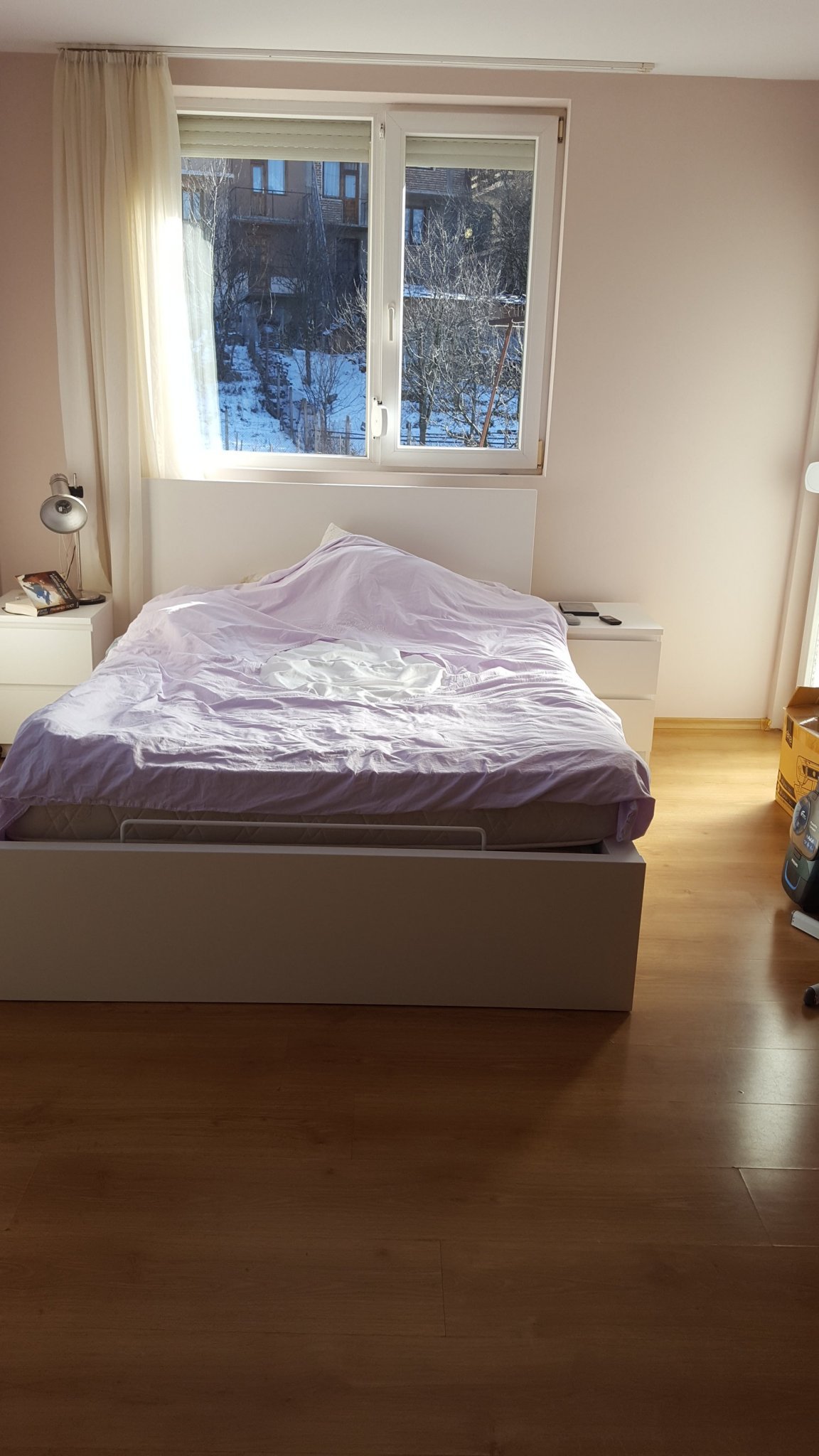 Мебелите са бял мат от Икеа и разположението ще е същото, само гардеробът ше е с около 50см по-широк.