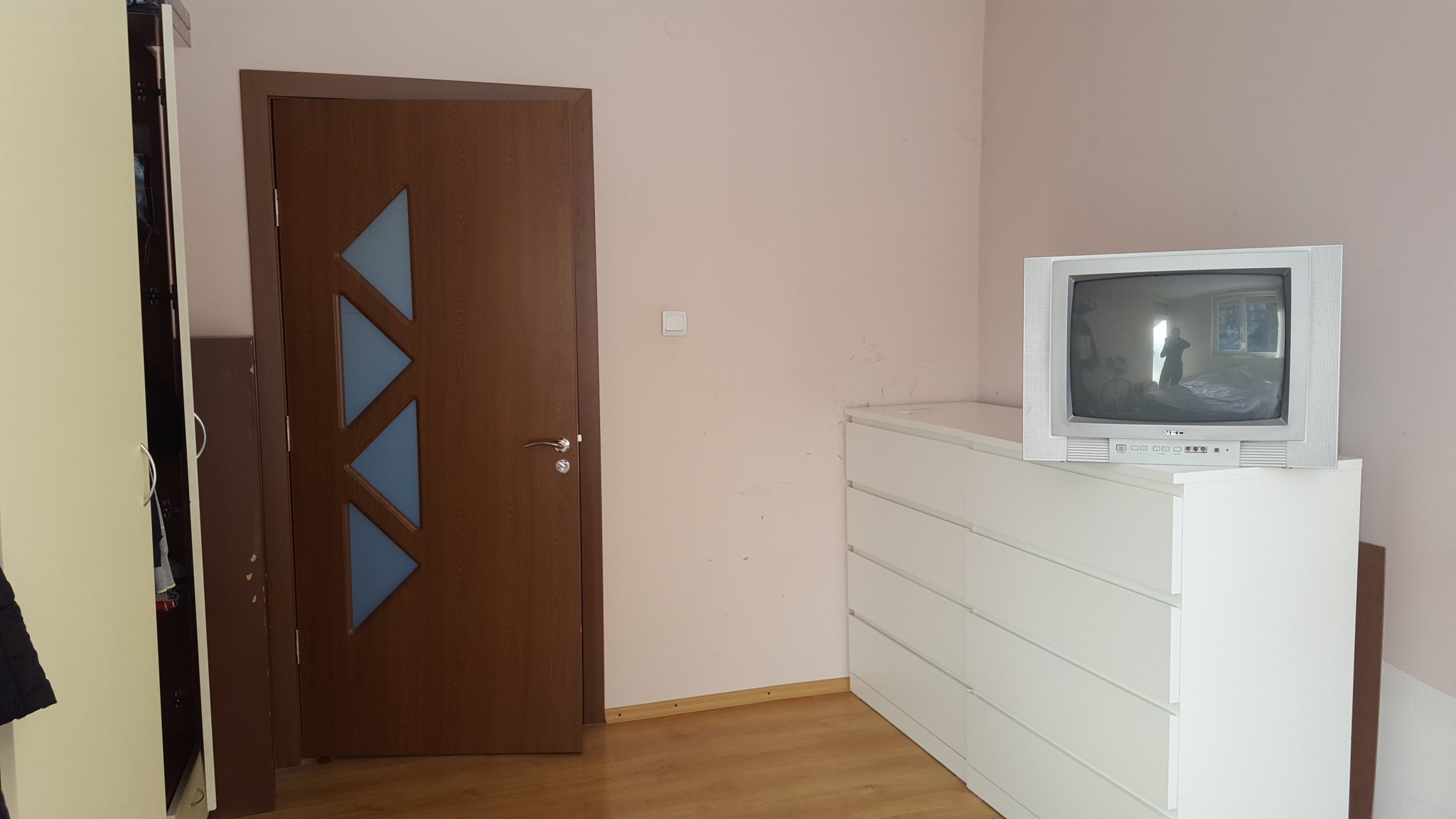 Не разбирам хич от цветови комбинации и интериор/то затова се и допитвам де/ Смятате ли, че ще е много зле с тази врата? В дясно от нея на стената ще сложим ТВ, та този ще изчезне от скрина. на мястото на гардероба ще сложим нов- бял Икейски(плъзгащи врати, едната от които огледало/. Паркетът може и да го сменим, но пак ще е подобен цвят, защото в другите стаи е сменен.