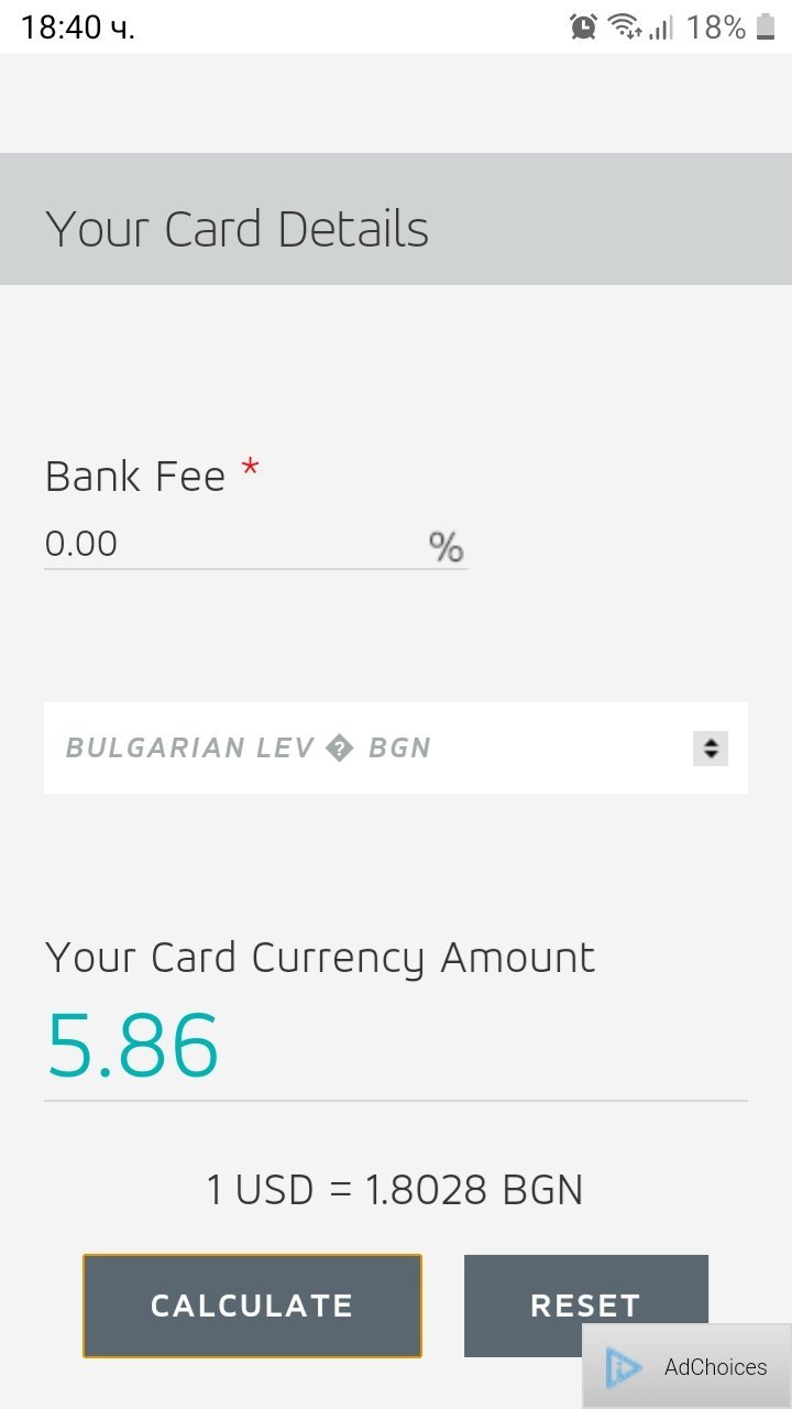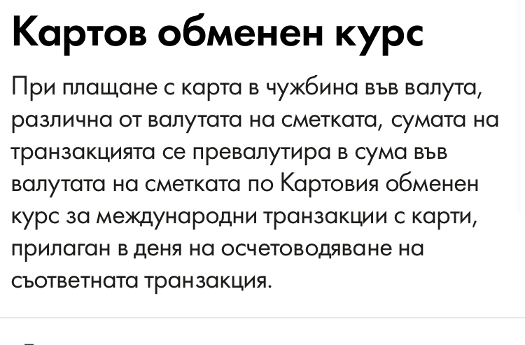 https://www.mastercard.us/en-us/consumers/get-support/convert-currency.html  и https://www.visa.co.uk/support/consumer/travel-support/exchange- … e-calculator.html. Ако банката ви не начислява допълнителни такси (както е при мен -ОББ), то можете да си видите точната сума чрез тези калкулатори. Сложете ги и на първа страница в темата, защото явно все още има много заблудени хора.