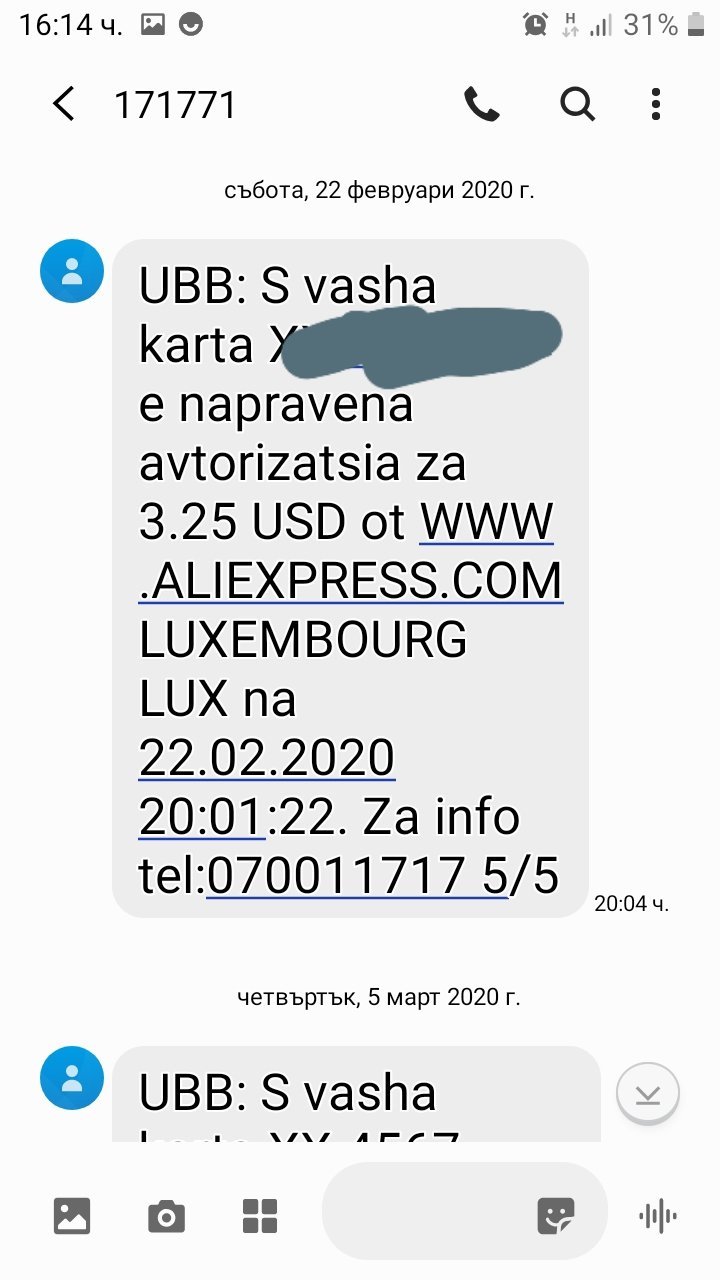 Ето ти пример с една моя поръчка от Алиекспрес за 3.25 долара и как е сметнат курса в сайта на Мастъркард и как същата сума ми е отразена в банкирането на ОББ.