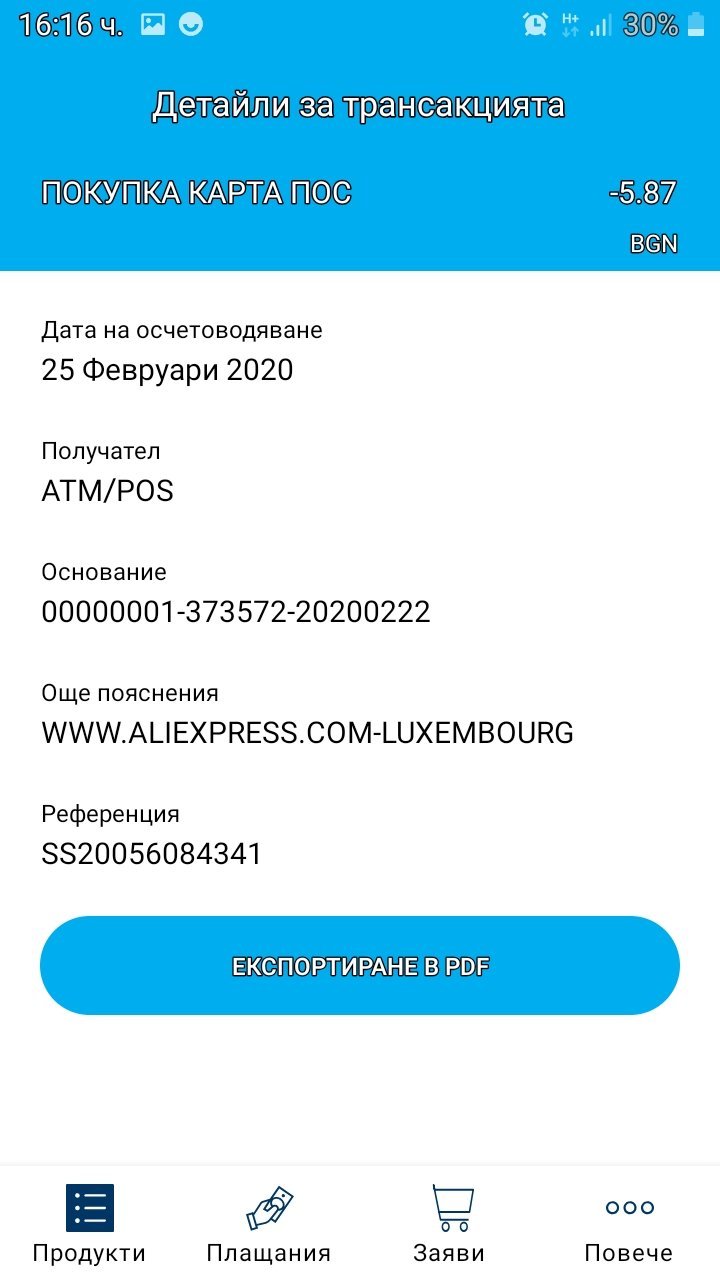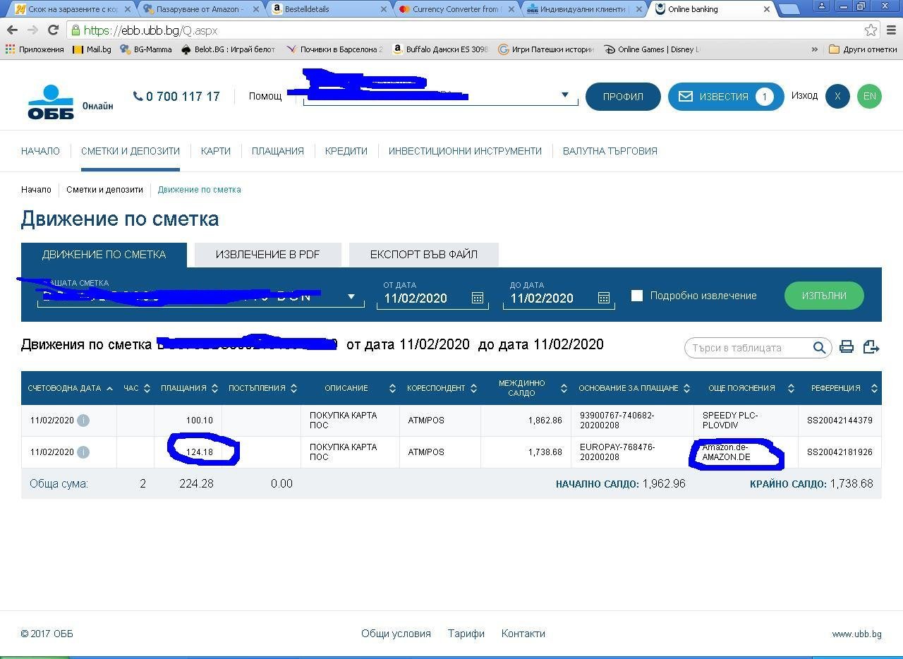 И снимка как абсолютно същата сума ми е отразена в банката: