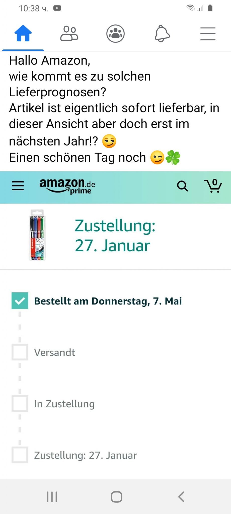 Хи-хи, да ви постна едно оплакване до амазон. Вижте дата на доставка. Човекът се оплаква, че артикула е наличен.
