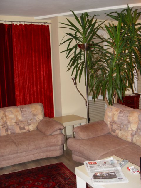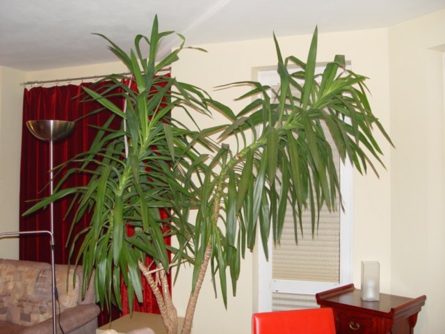 Тази палма, мила на сърцата ни, вече 10 г. с нас къде ли не, иска да пробие тавана и да се разрастне и у съседите. Е, засега е невъзможно да превземем горния апартамент, та се чудим какво да я правим.