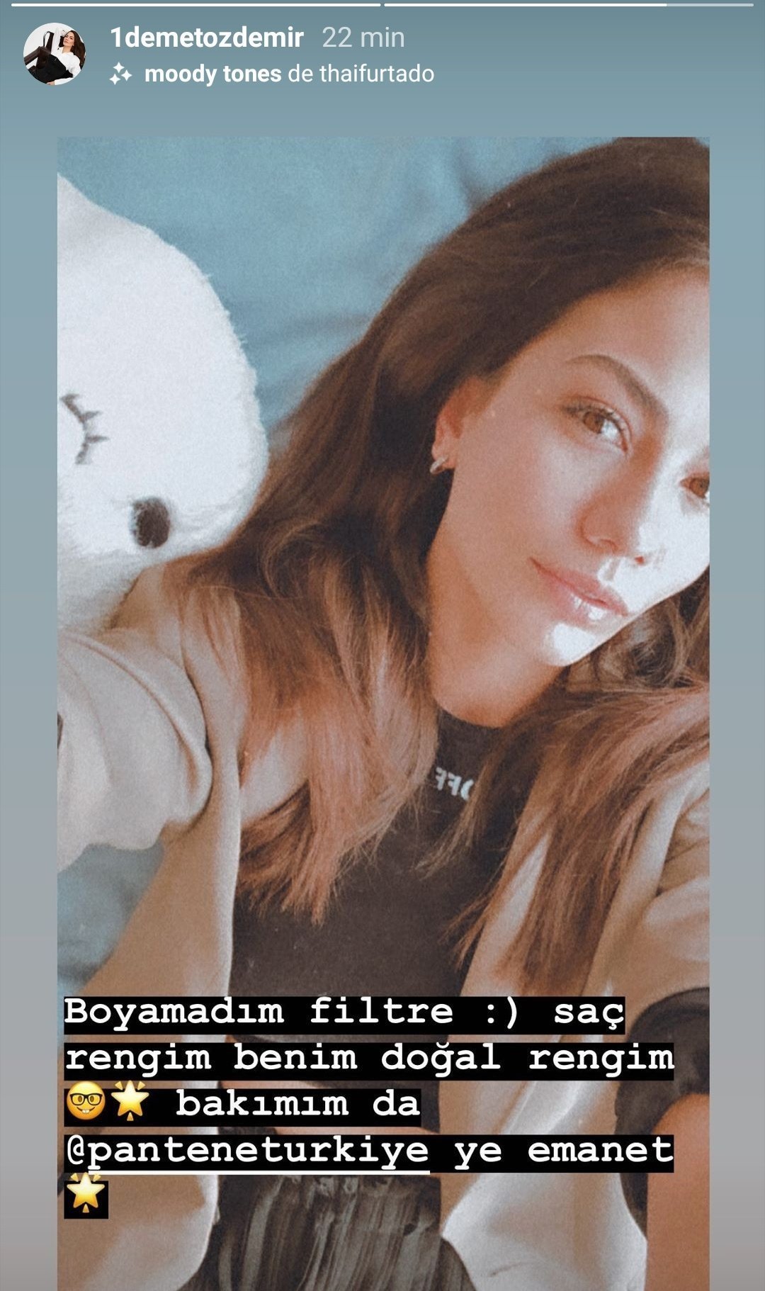 "Не съм боядисала филтъра Simple Smile цветът на косата ми е естественият ми цвят и грижите ми за нея са поверени на @panteneturkıye"