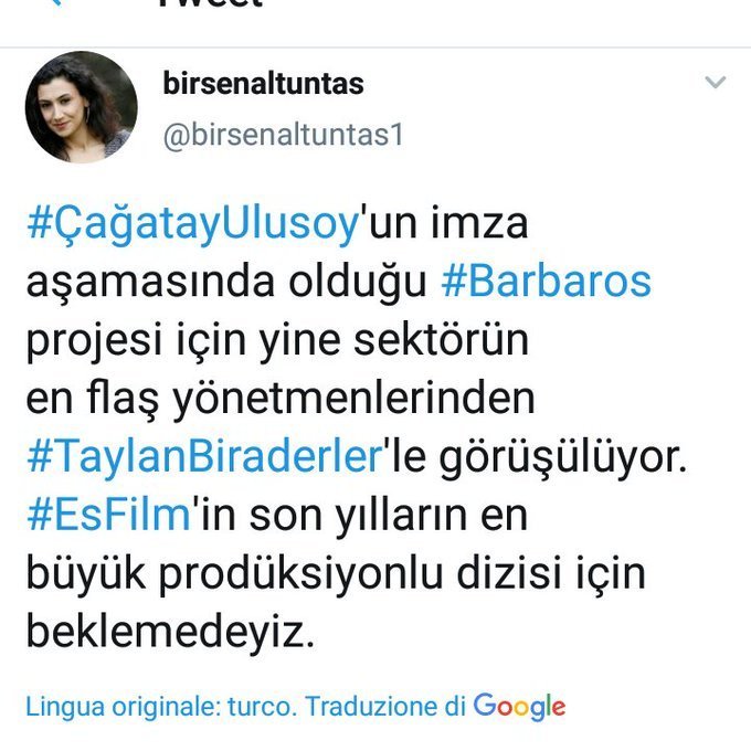 "За проекта Barbaros, където Gağatay Ulusoy е във фаза на подписване, се обсъжда от Taylan Biraderler, един от най-светкавичните директори в индустрията. Чакаме най-голямата продуцентска серия на Es Film през последните години." (превода не съм сигурна дали е съвсем точен)