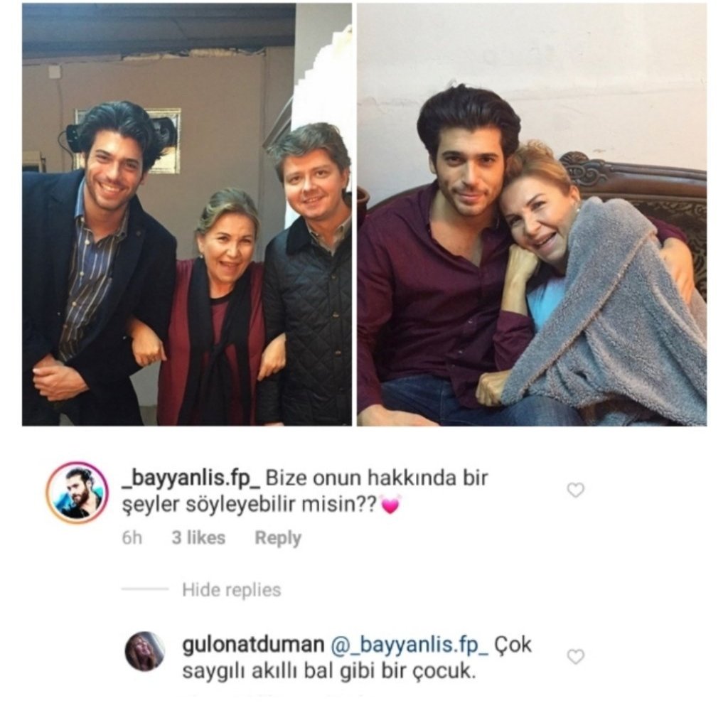 Актрисата Гюл Онат Думан си публикува спомени с Джан в Инстаграм, преди дни си качи снимка с него с надпис "Sevgili oğlum Can." "Скъпият ми син Джан" Днес и вчера си публикува още две Simple Smile