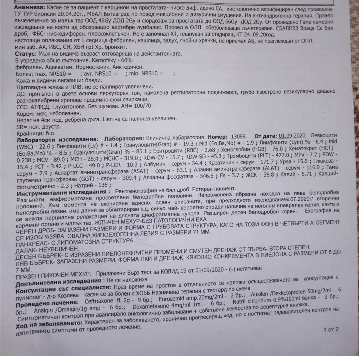 Надявам се добрите ми новини да ви ободрят и окуражат . Направихме рутинната контрола . Всичко е наред при нас . Няма промяна в дроба отпреди 3 месеца  . В четвъртък ще ни кажат кога ще е следващия преглед , предполагам , че вече ще е на 6 месеца . На мене ми се ще да настояваме за дата след 3 месеца . Физически е много добре , пълен е с енергия .  Пътувахме с кола и болният отказа да го сменям на волана , мина си 1800 км като стой та гледай . Нощта преди томографа беше напрегнат , но добрите резултати ни оправиха настроението . Спокойна нощ пожелавам на всички!