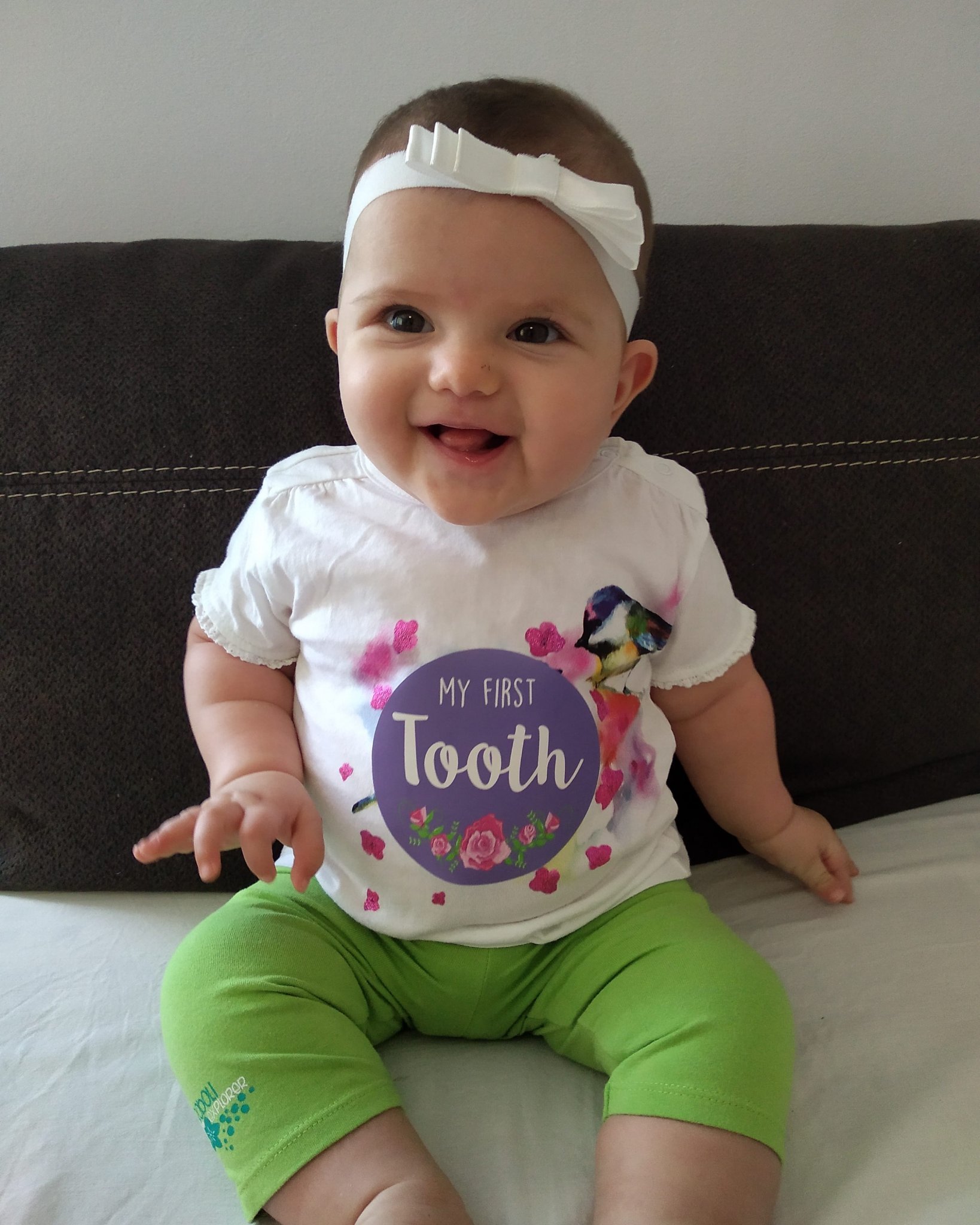 Какво усмихнато бебе !Кукличка малка! Честито първо зъбче!