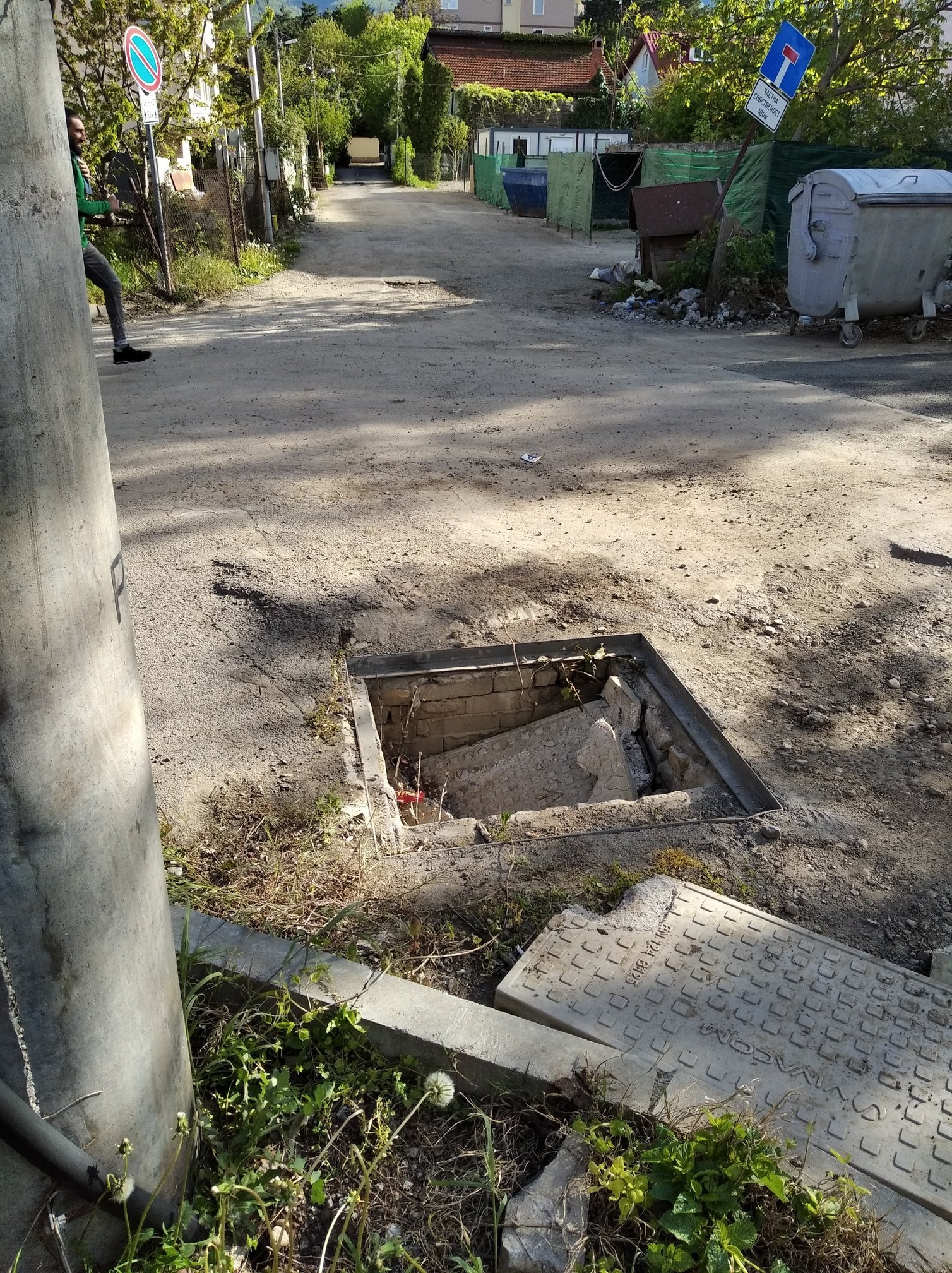 Но все още не го е направила - пред някои от новите кооперации има тротоар, пред други - няма, оградите им са сложени до самото улично платно. Значи и при даренията-отчуждаване няма единен подход - явно кой както се "договори" с общината. Което е жалко, в район, който ти и брокерите описвате като привлекателен и перспективен. Защото все пак за да стигнеш до приятната си нова кооперация, трябва да минеш през дупките, които са си доста големи пропаднали шахти някои от тях, както се вижда. А перспективата може да е и 20-години напред във времето, половин съзнателен човешки живот.