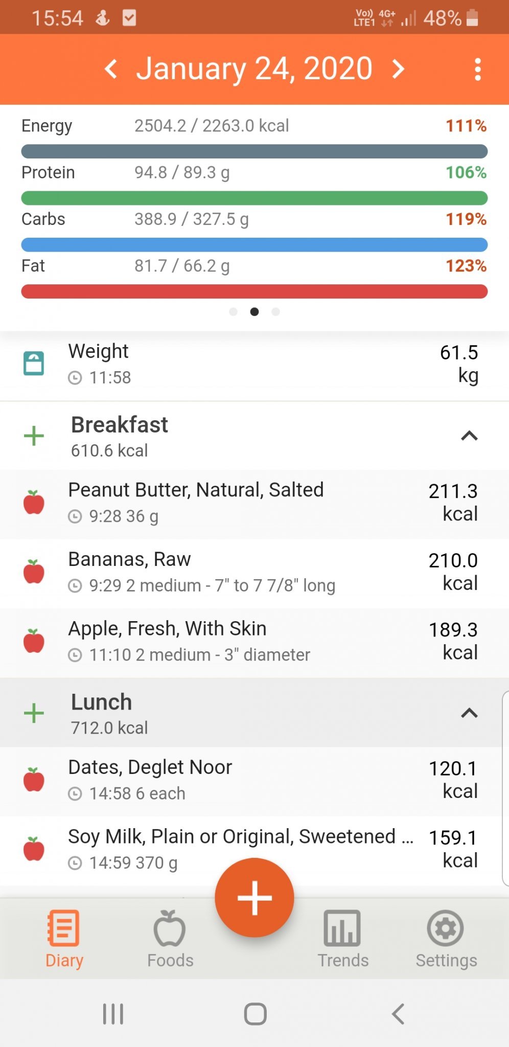 Кайлин, сега ще кача един скрийншот на храната, която съм приела за един ден (беше през януари последния път когато си проследих какво хапвам, а иначе аз от време на време го правя, но не всеки ден, защото става много досадно)...