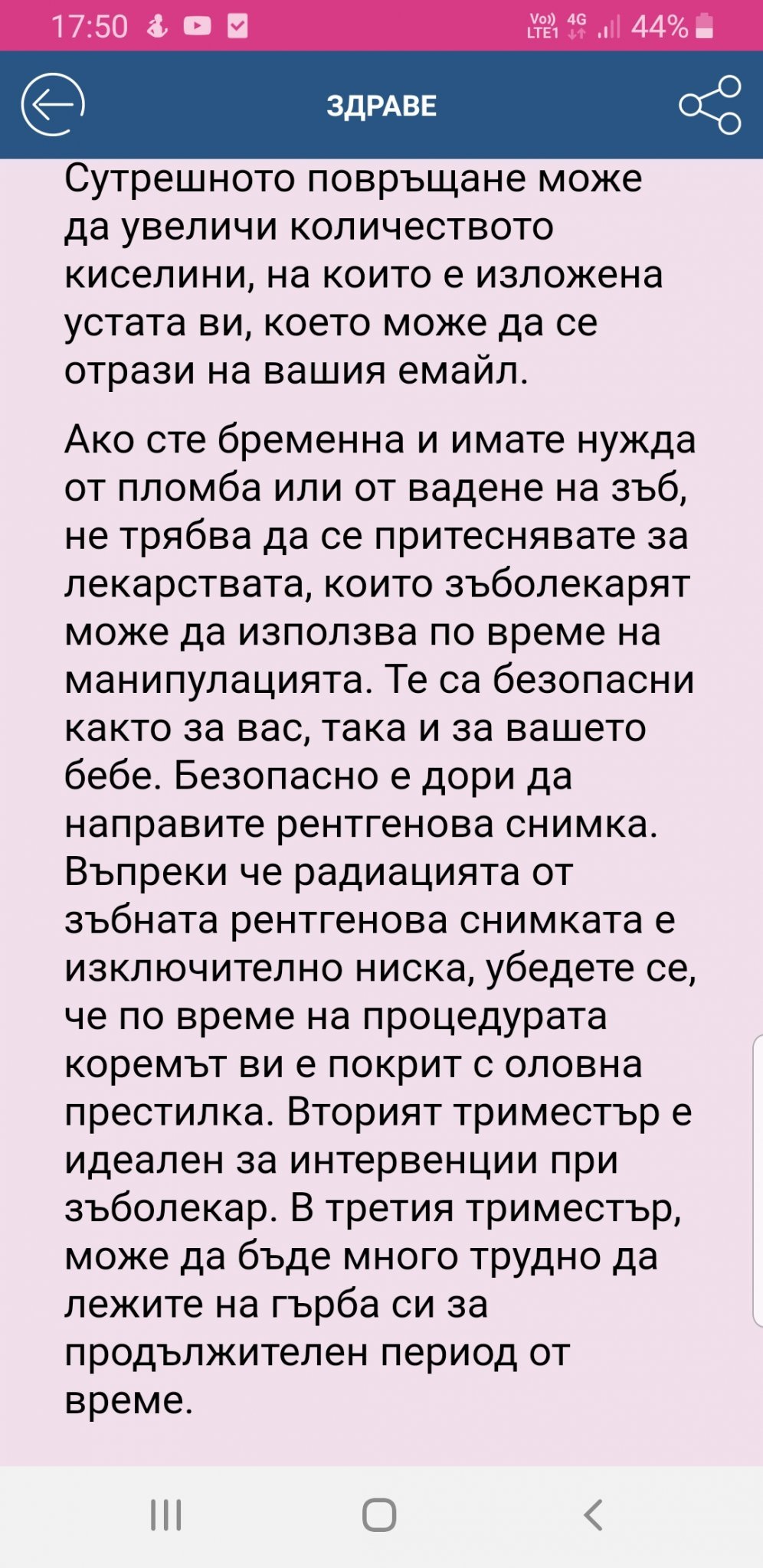 Ледена Кралица, виж какво пише за зъболекаря по време на бременност в приложението Фея (информацията е съставена от лекарите в Токуда)...