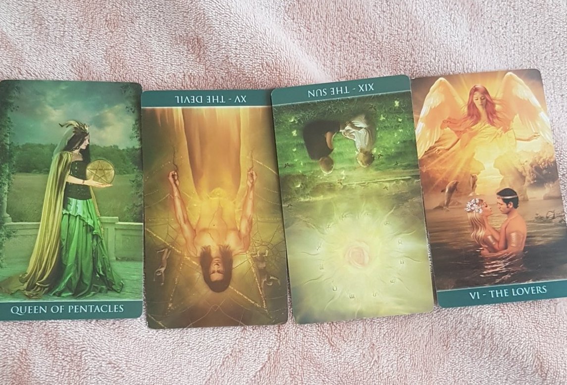 Эдравейте момичета,отскоро имам карти ,но съм много увлечена от това "приключение" Таро...Heart Какво мислите эа таэи подредба?Въпросът е ще бъдат ли въэстановени отношенията между двамата партньори?Четвъртата карта я иэтеглих ако бъдат въэстановени до колко време,но не намирам информация эа эначението на картите в комбинация..Cold SweatМоля ако някой пожелае да съдейства!Благодаря эа отделеното време и енергия!