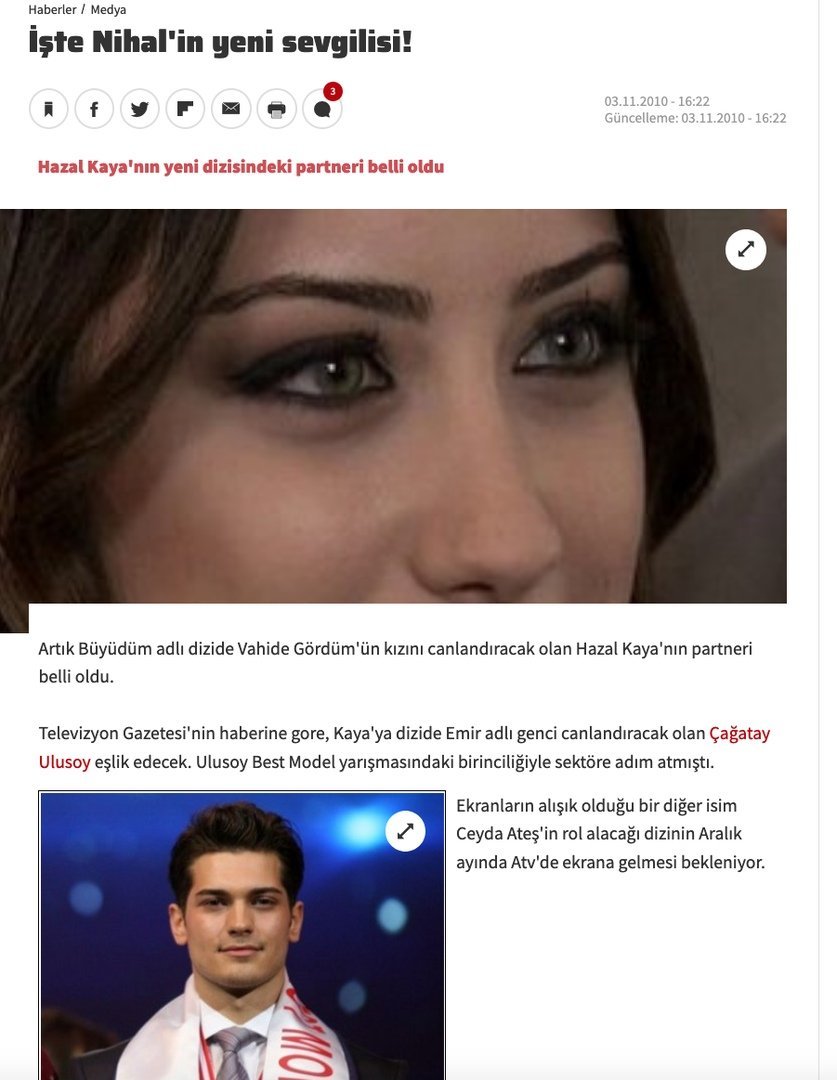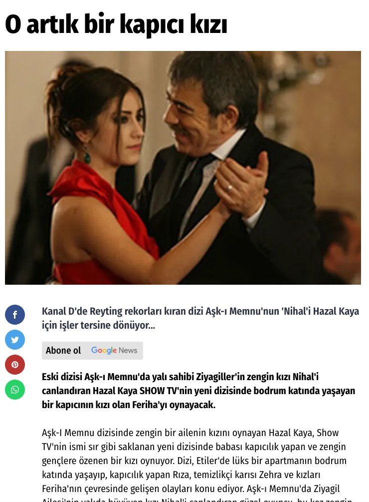 "Сега тя стана дъщеря на портиер"  и  "Новият възлюблен на Нихал"  Статии току след конкурса и 2 месеца преди пускането на сериала на екран.