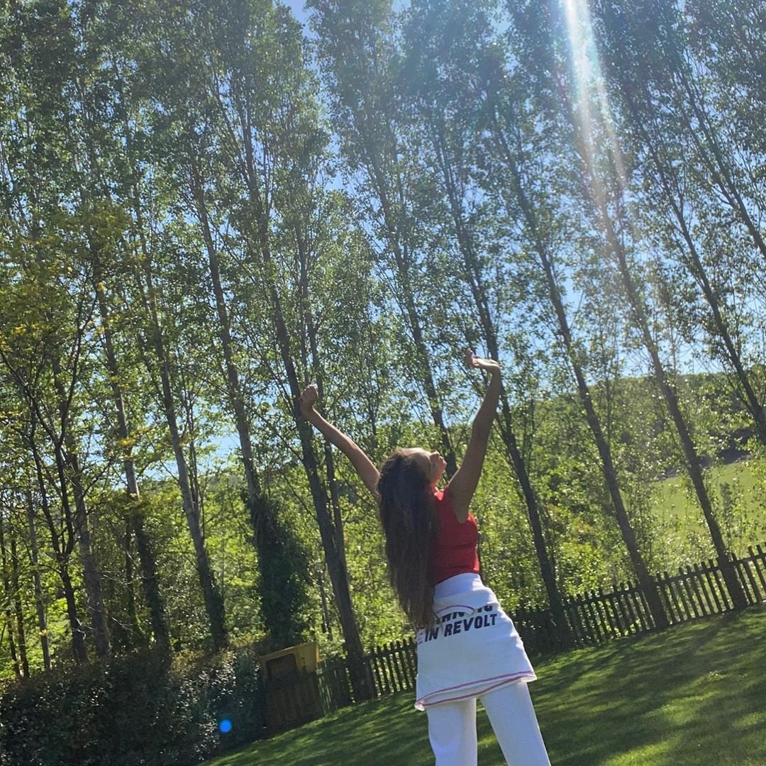 Другата Ча я снимал как разперила ръце и се радва на слънцето.