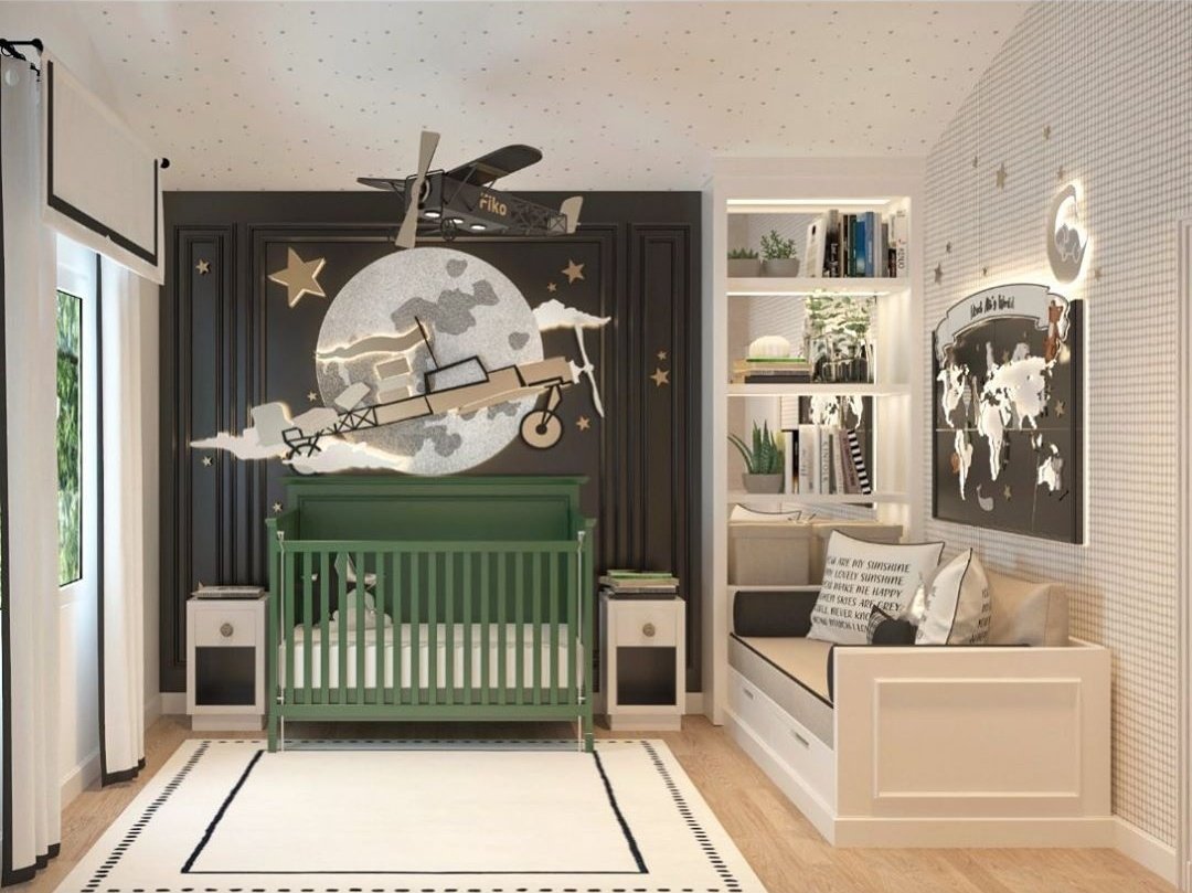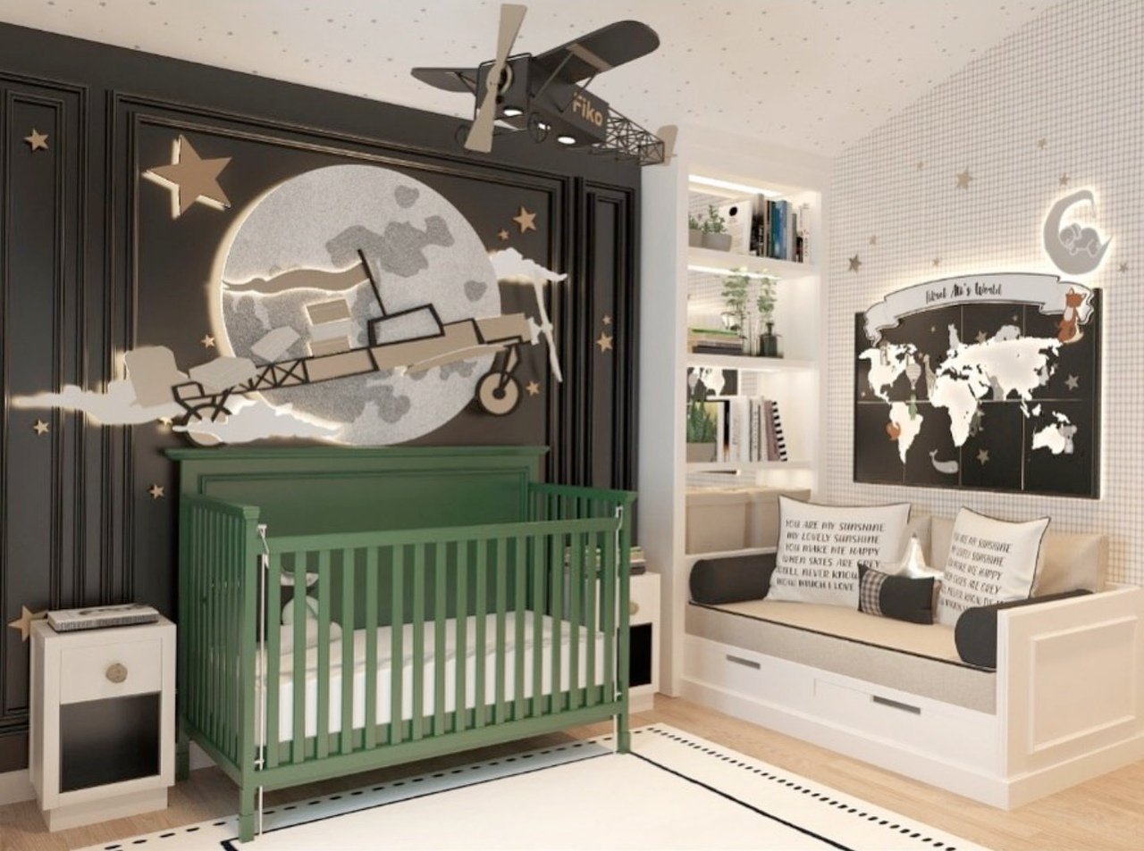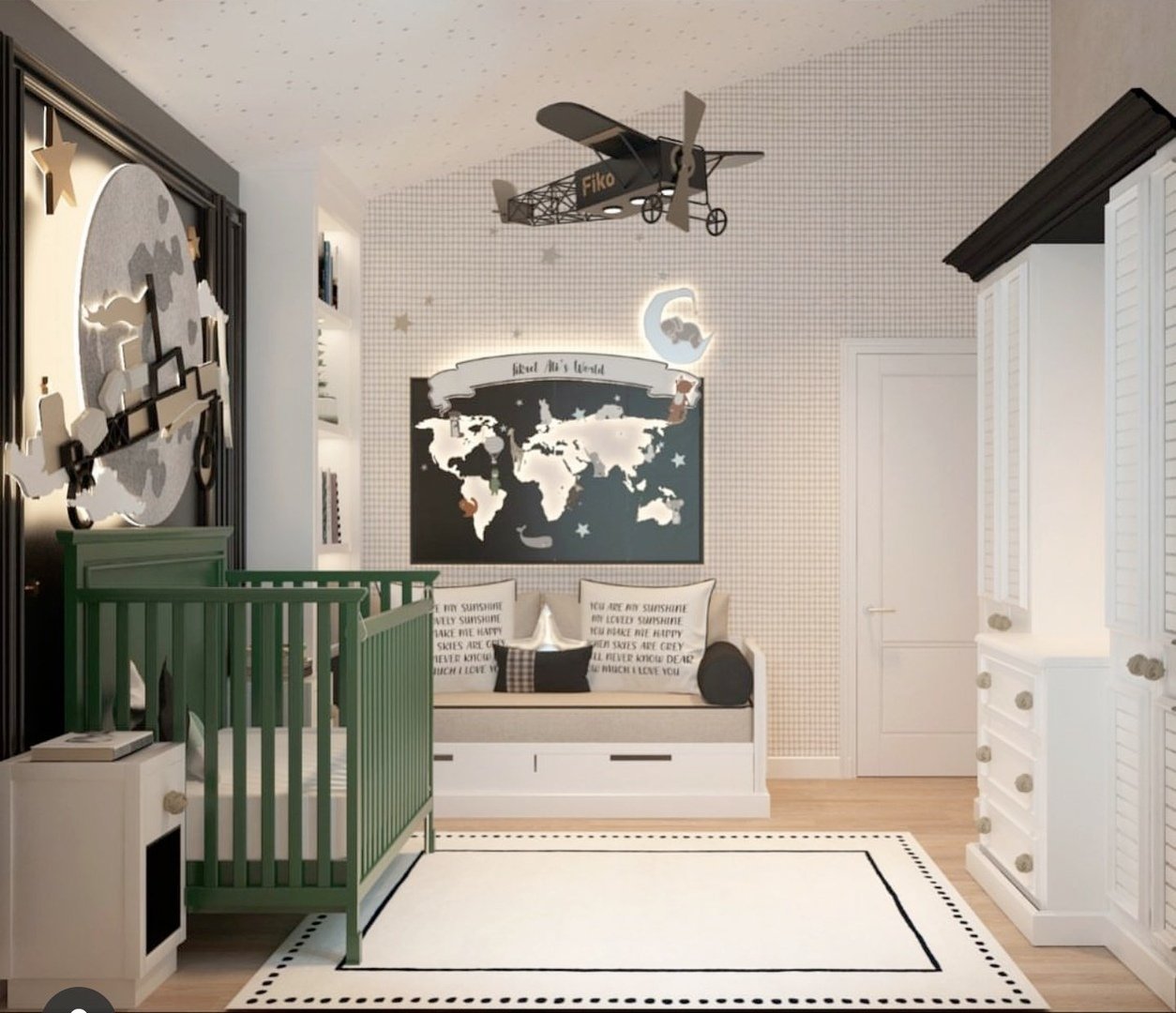 Хубав дизайн на детската стая .Мама си има диванче да го наглежда  .