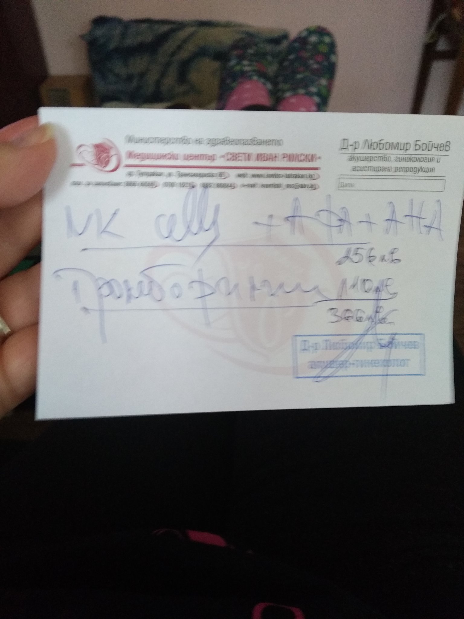 На бележката пише : NK cells + AFA + AHA - 256 лева